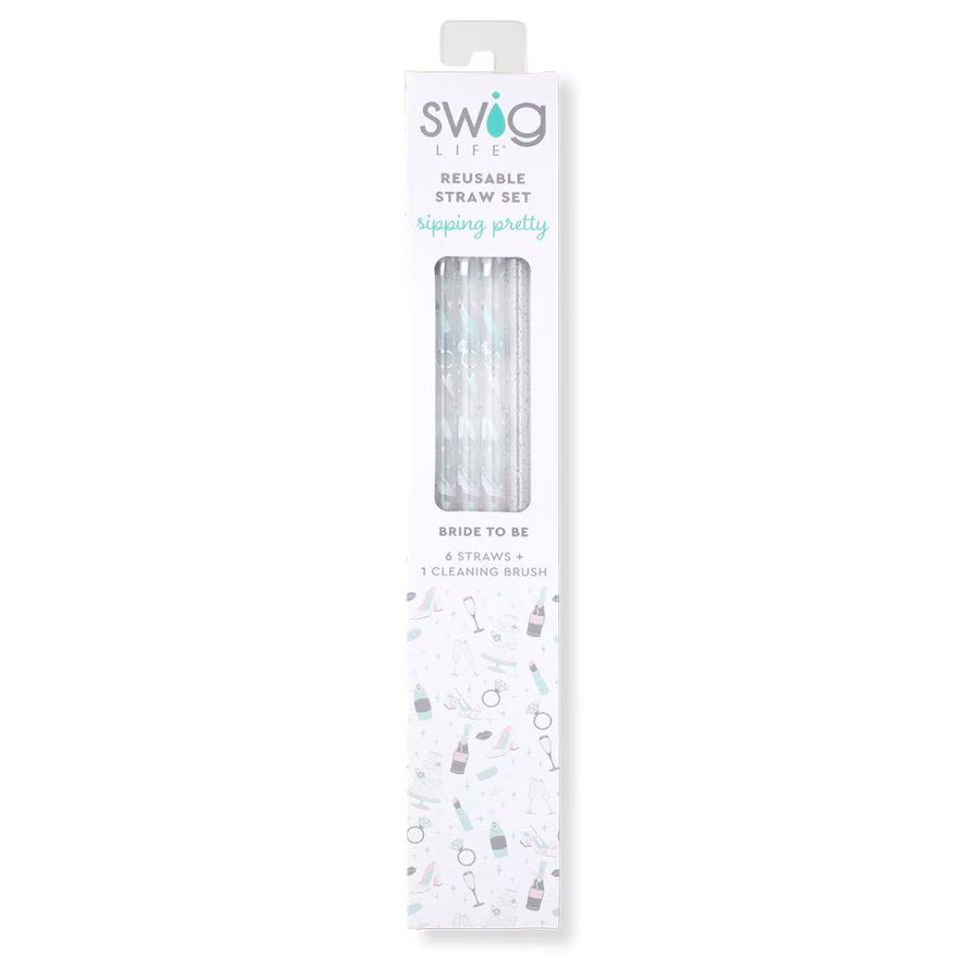 Swig | Bride to Be + Silver Glitter Reusable Straw Set