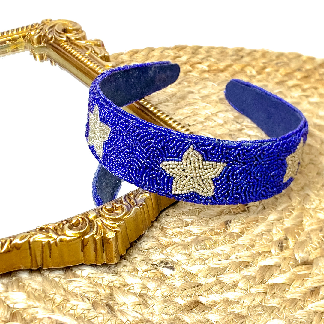 Team Spirit Navy Blue Seed Bead Headband with Silver Stars