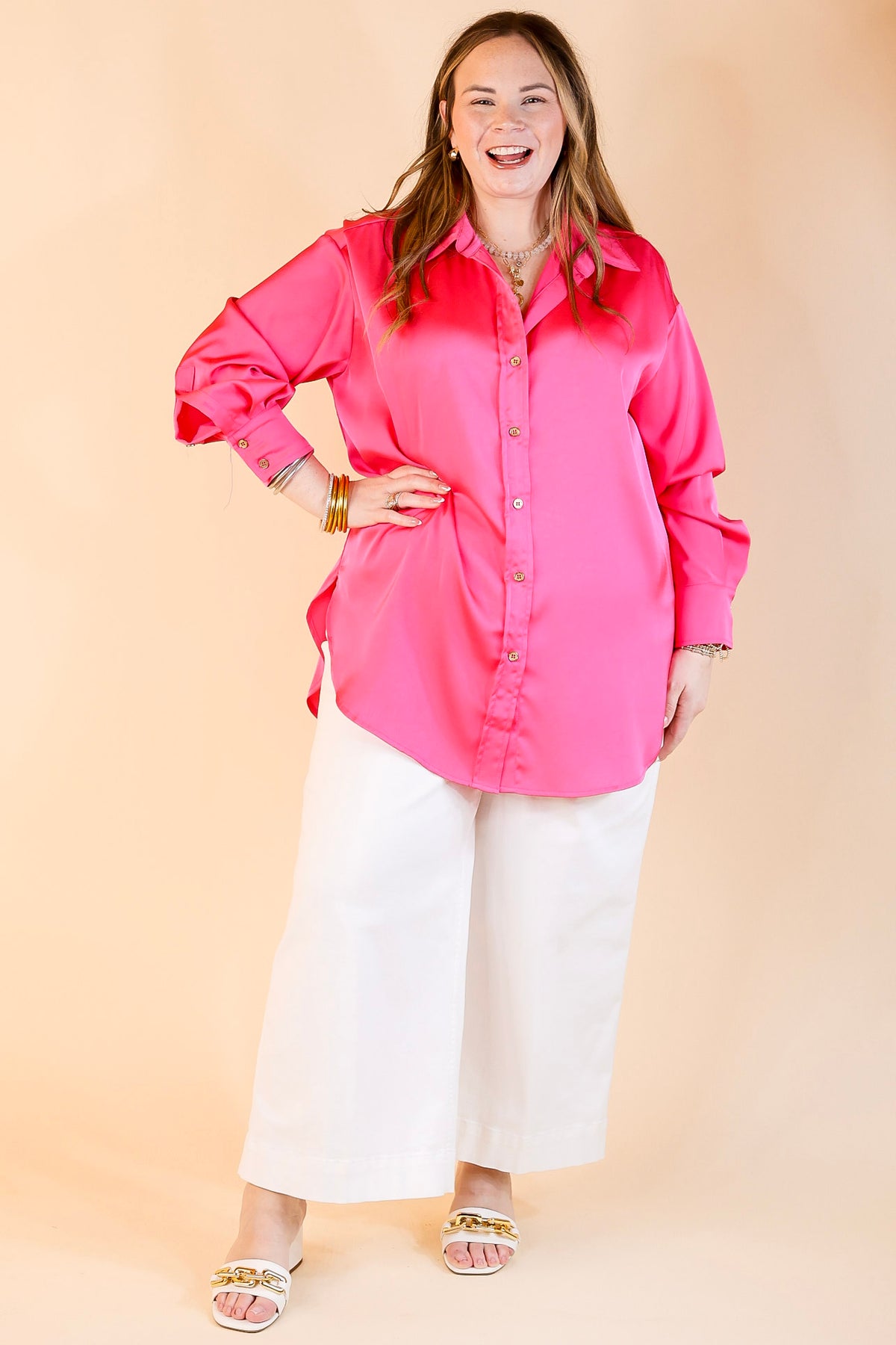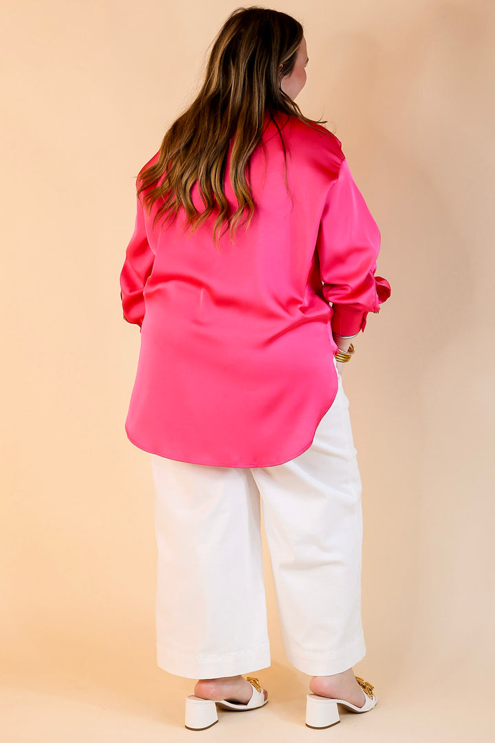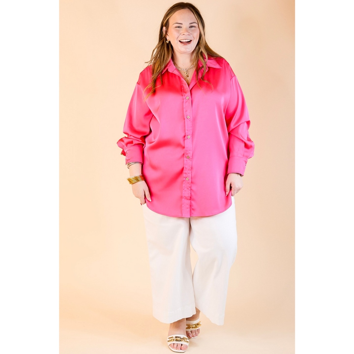 Tell Me Something Good Long Sleeve Button Up Top in Hot Pink