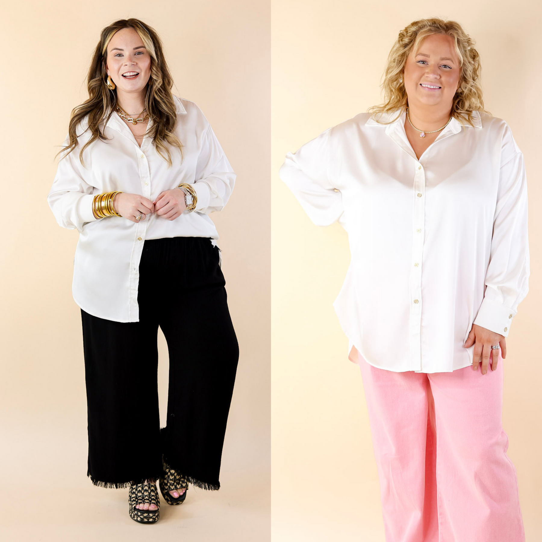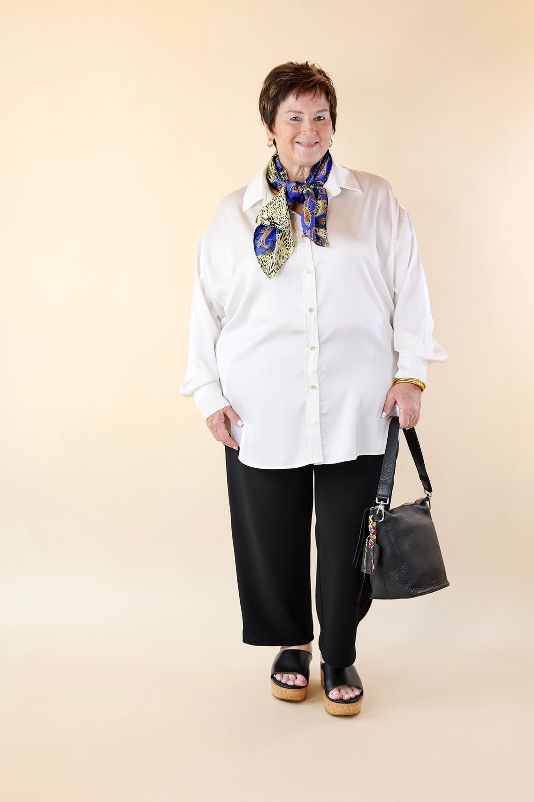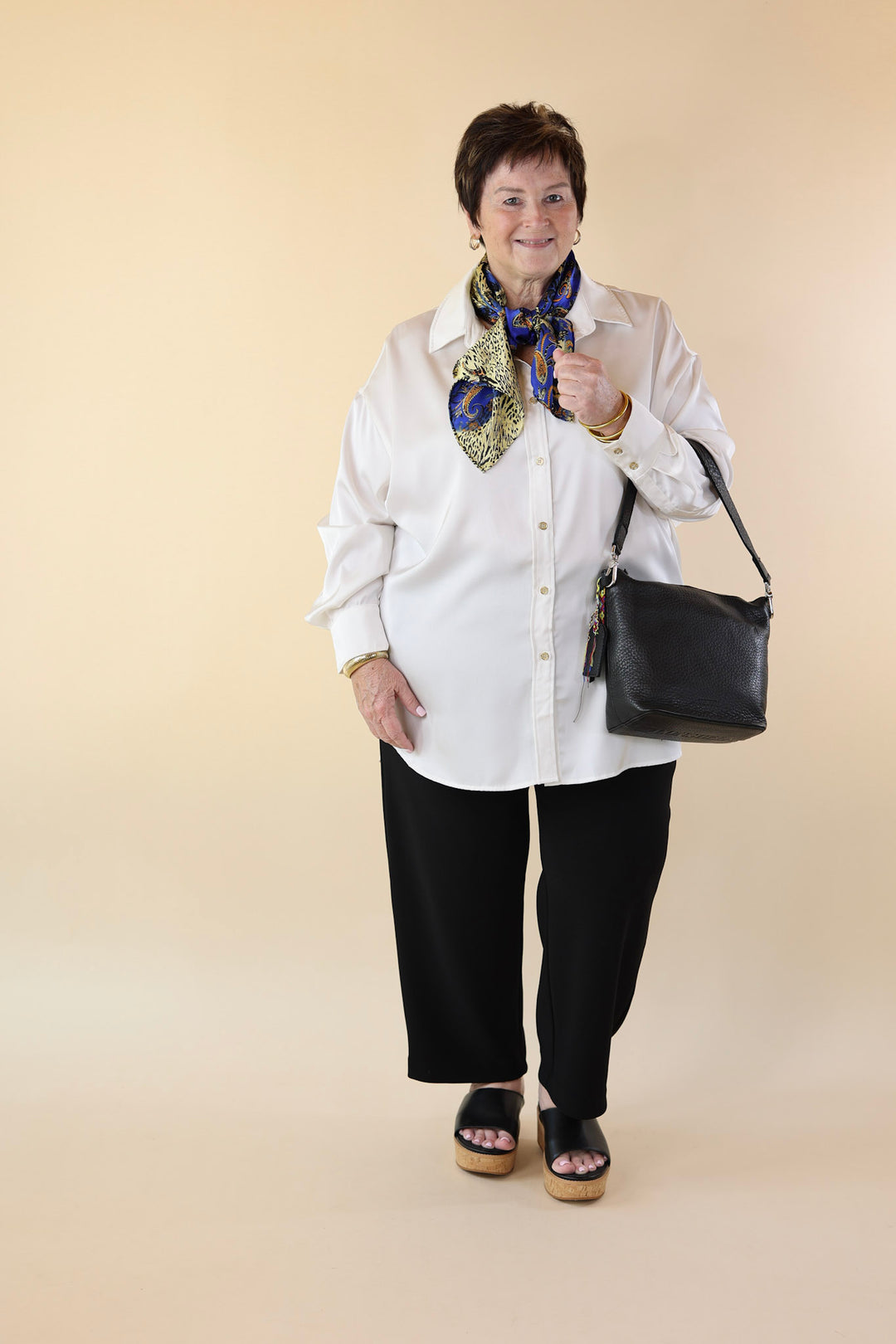 Tell Me Something Good Long Sleeve Button Up Top in Off White