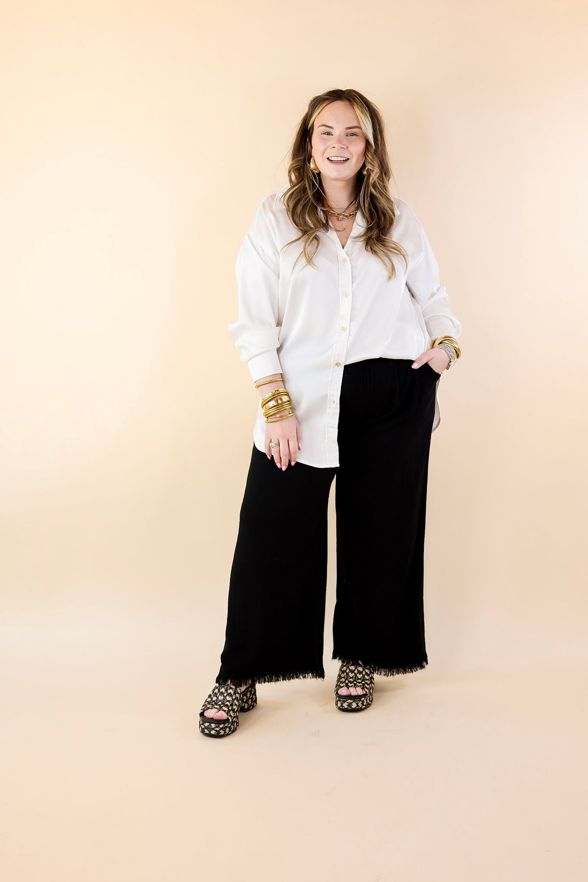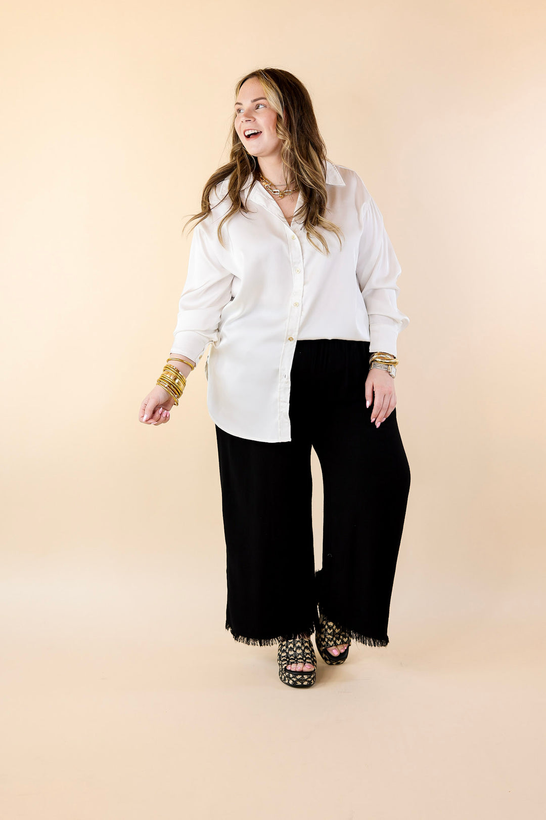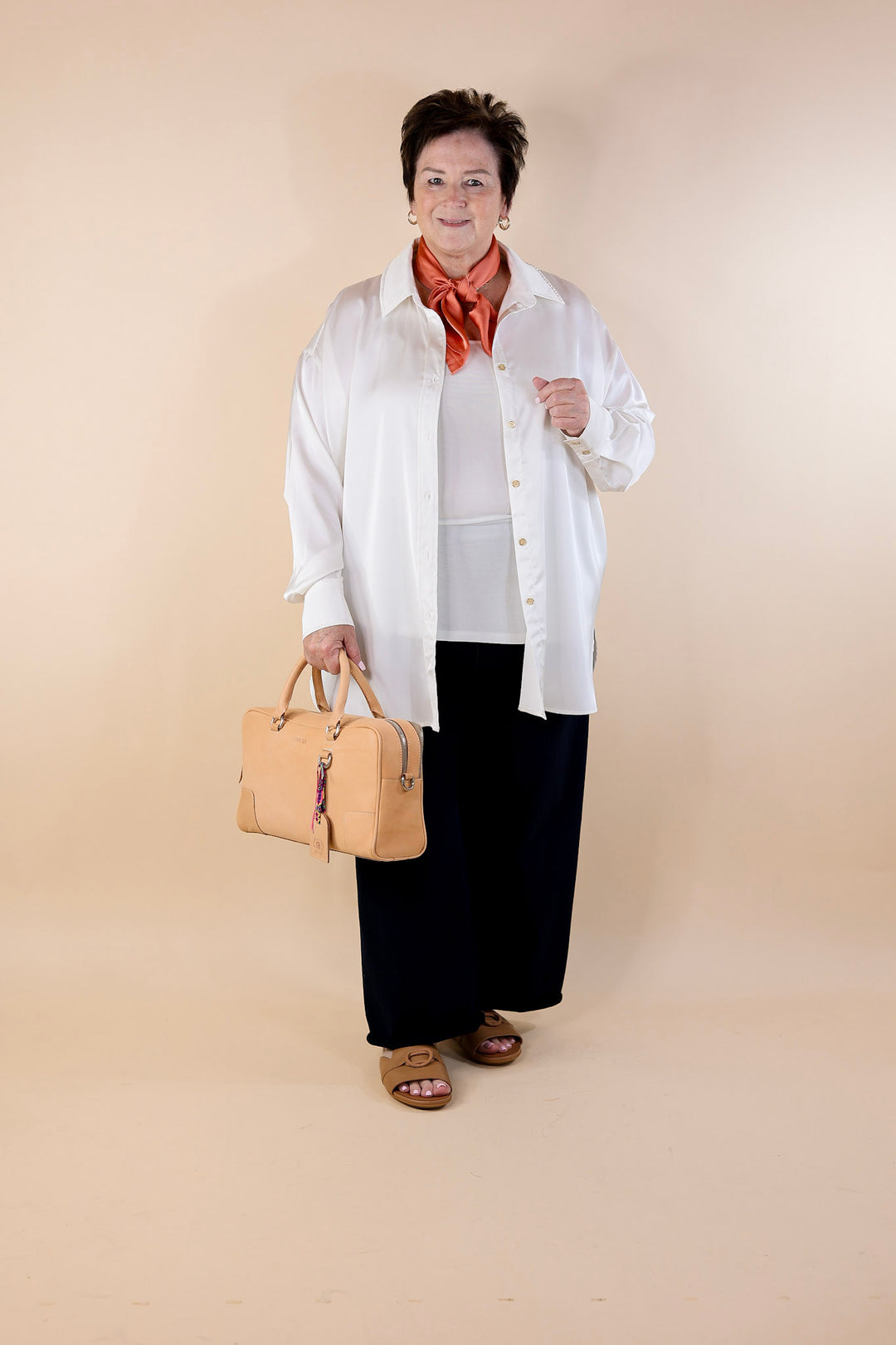 Tell Me Something Good Long Sleeve Button Up Top in Off White