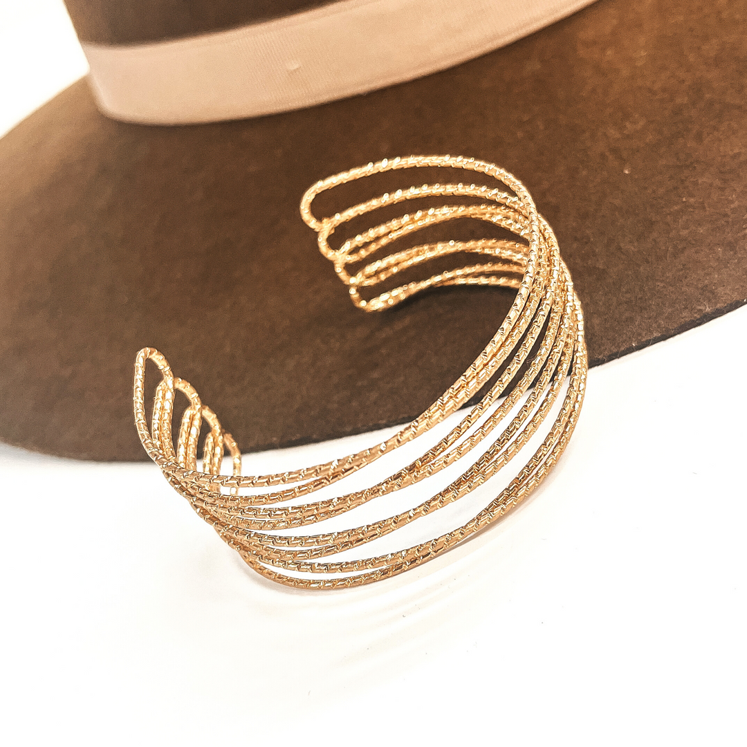 Island Twist Textured Metal Wire Cuff Bracelet in Gold Tone