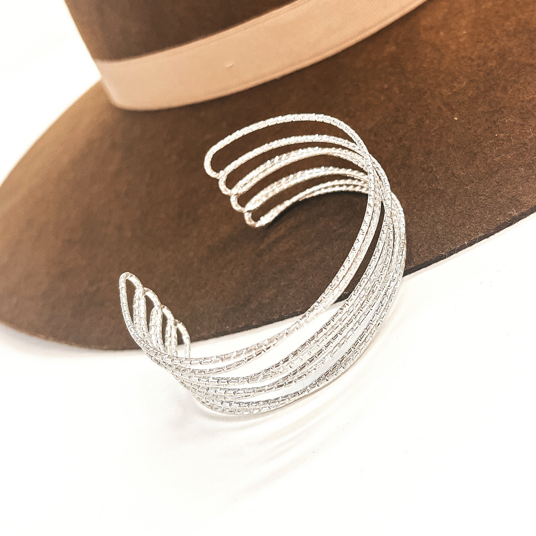 Island Twist Textured Metal Wire Cuff Bracelet in Silver Tone