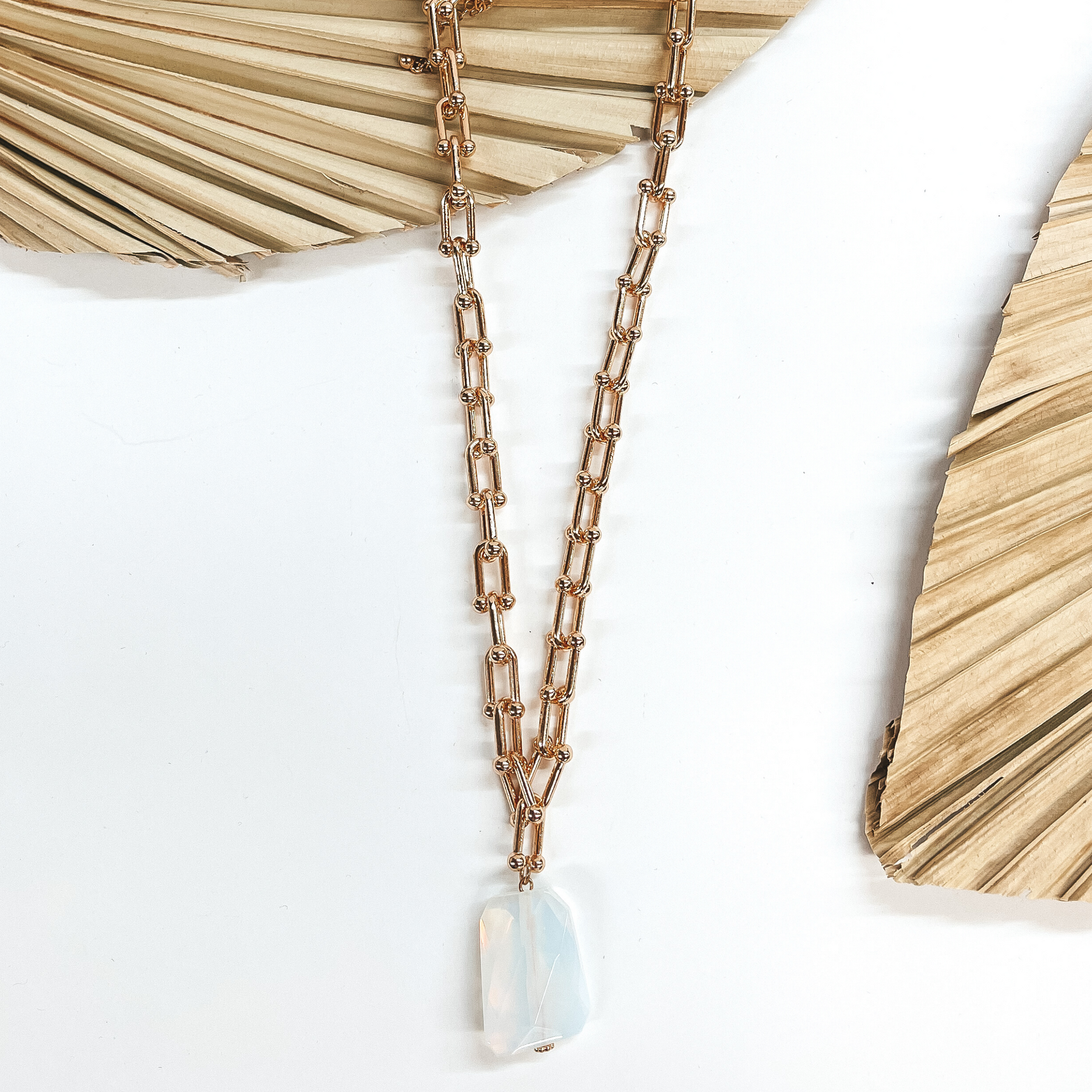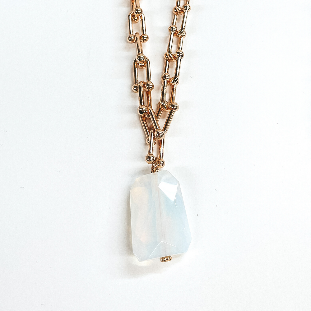 Thick Chain Link Necklace with Chunky Iridescent Stone Pendant