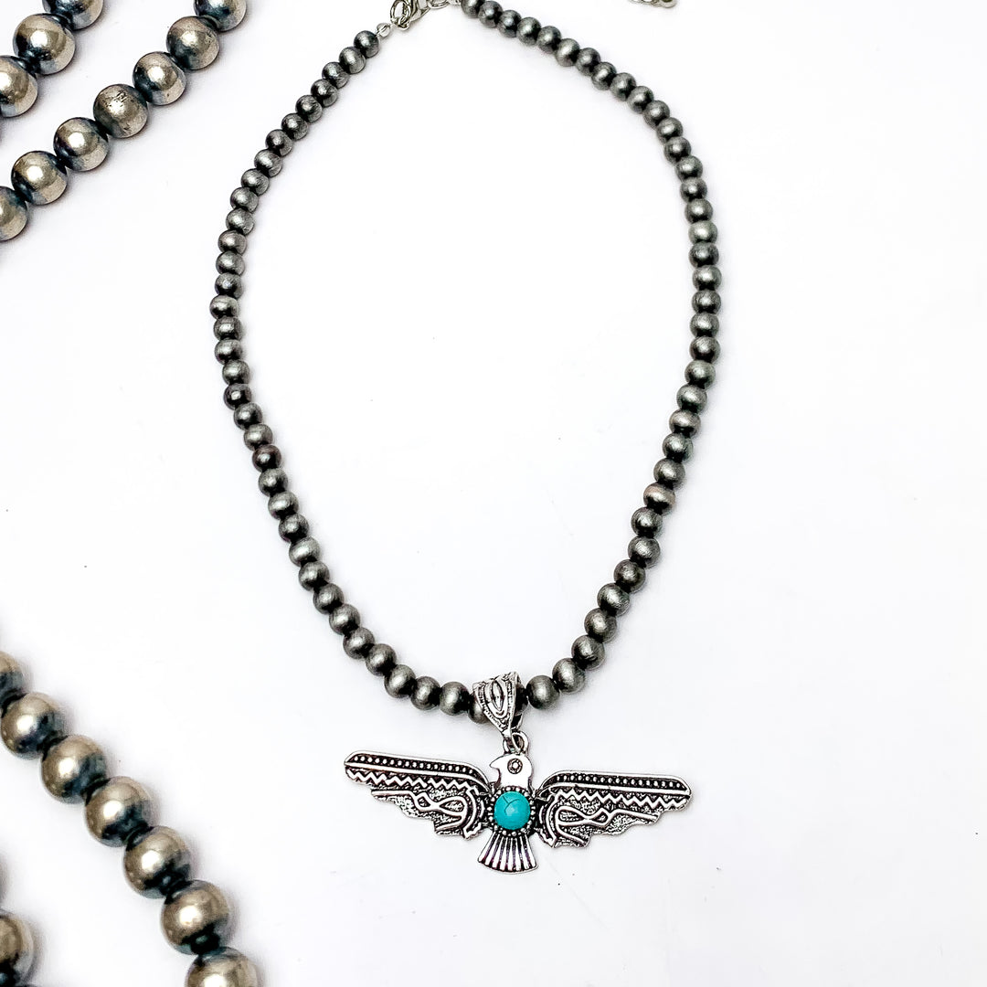 Thunder Bird Pendent Silver Tone Beaded Necklace