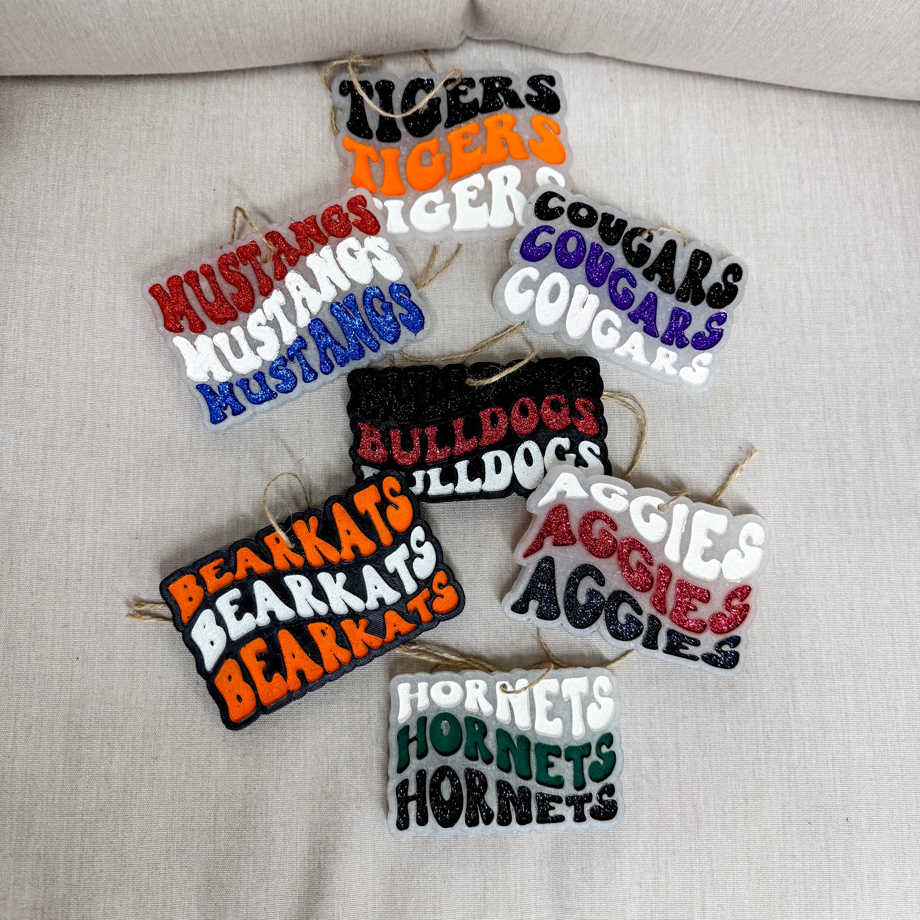 Show your team spirit with our Tigers Car Freshie! This freshie features Tigers in glittery black, orange, and white, proudly representing the school colors. Perfect for keeping your car smelling fresh while showcasing your school pride. Ideal for fans and alumni alike!