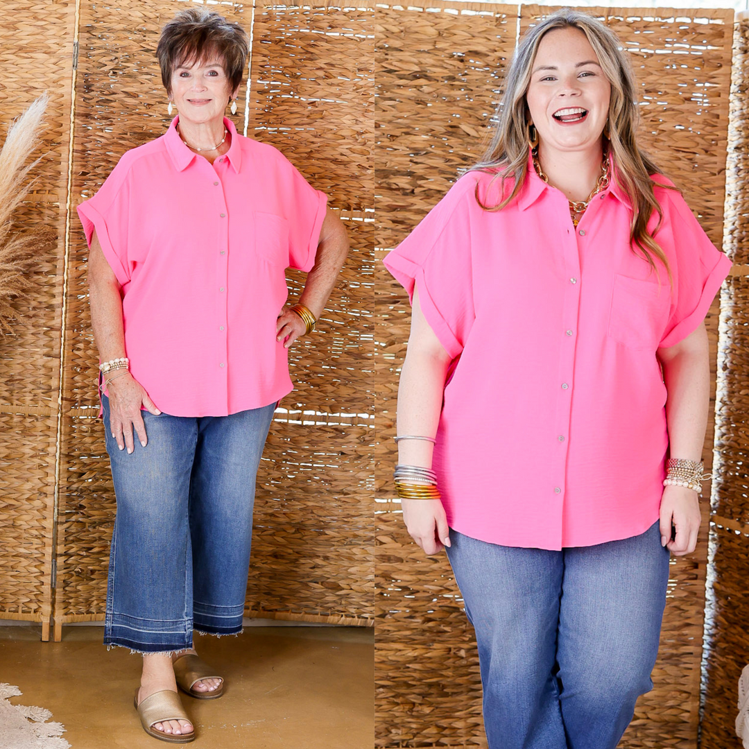 Timeless Appeal Collared Button Up Top in Hot Pink
