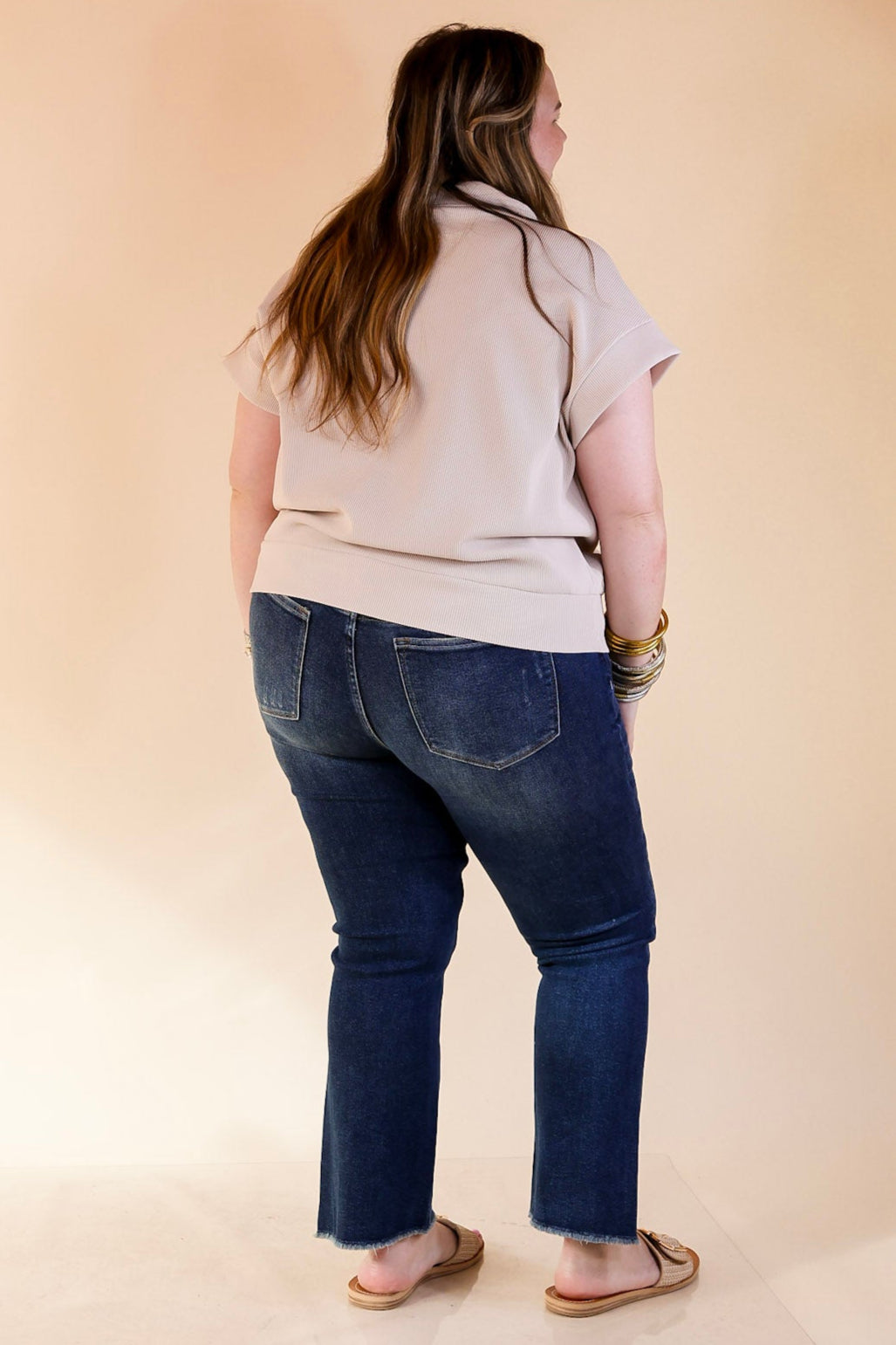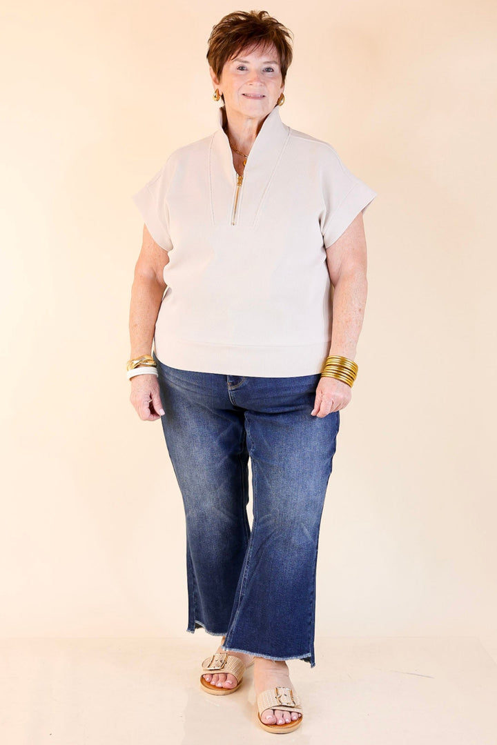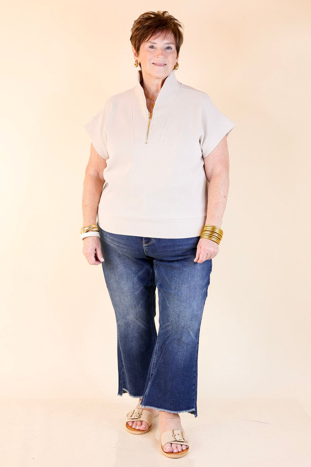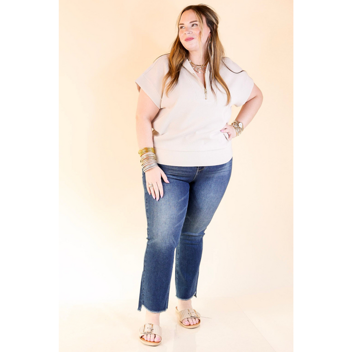 Top Priority Half Zip Collared Ribbed Top in Sand Beige
