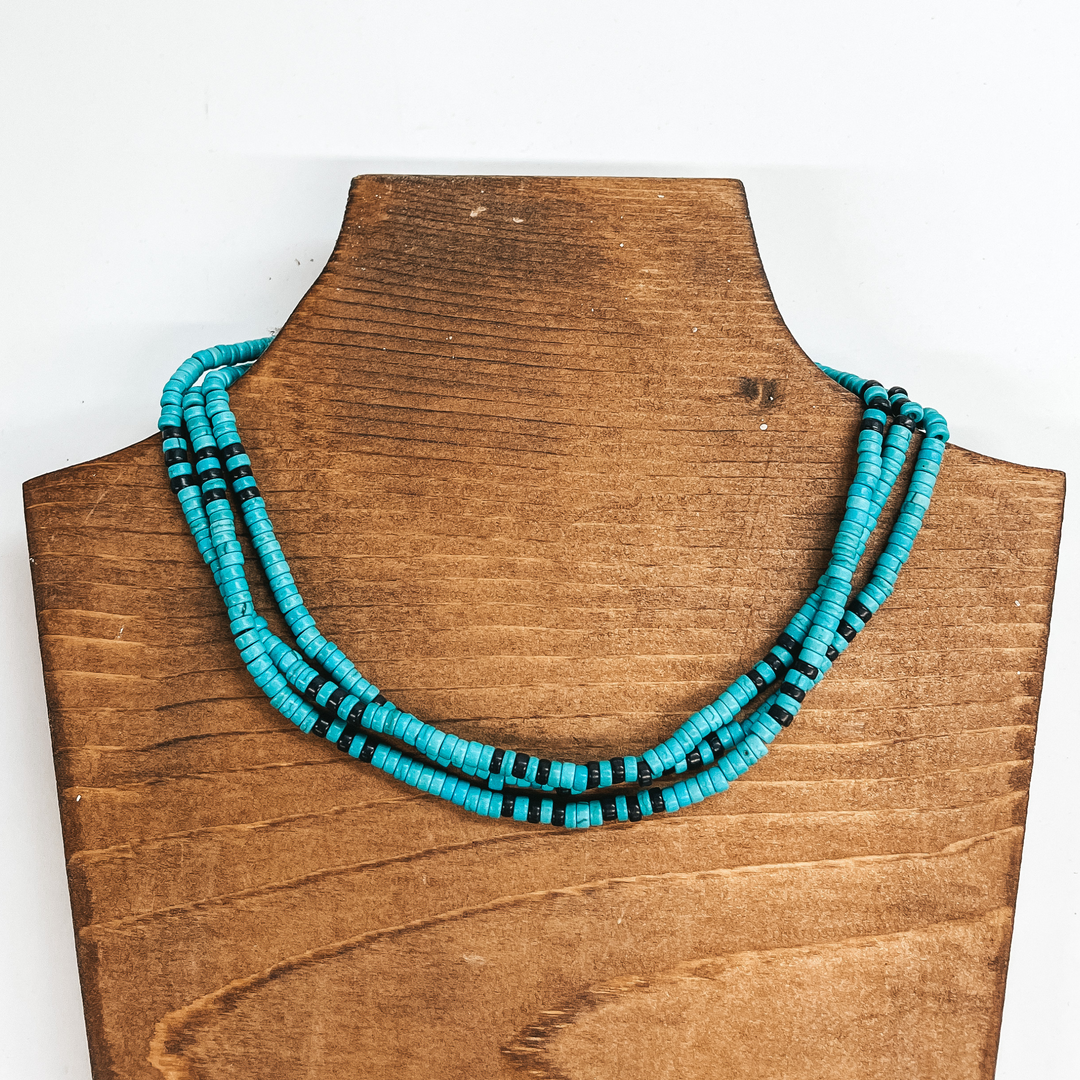Trend Maker Three Strand Turquoise Beaded Choker Necklace with Black Beads