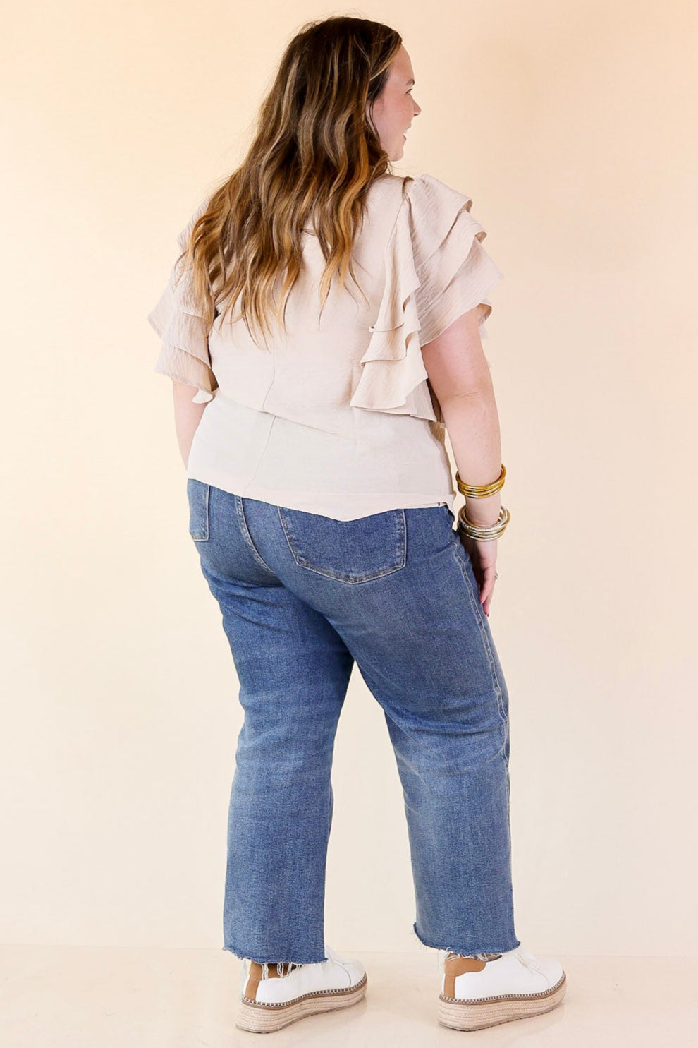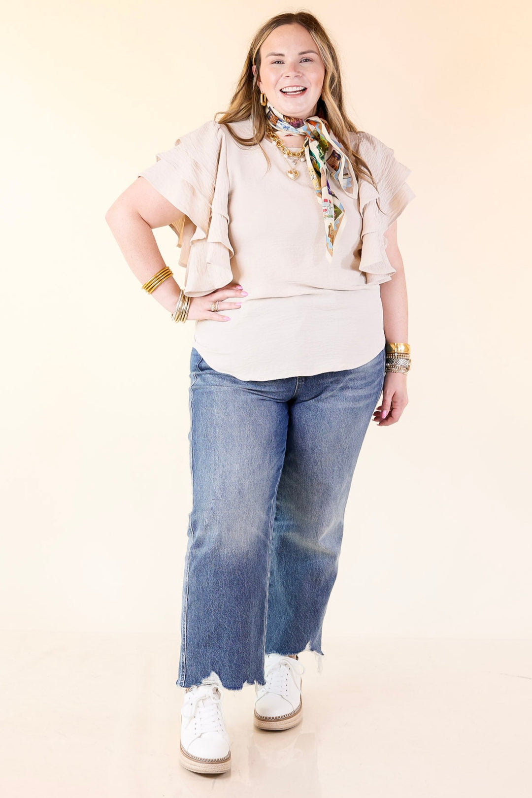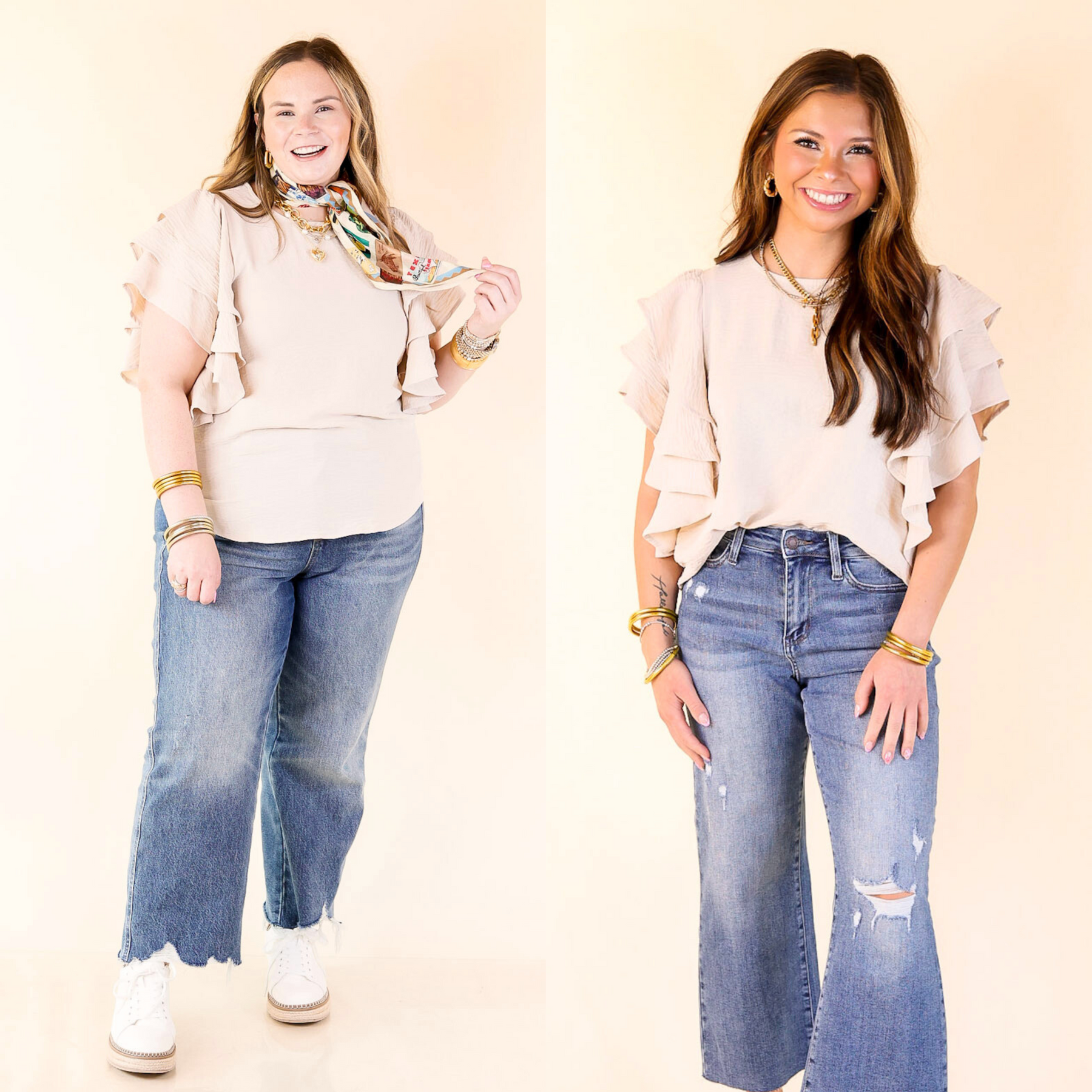 Turning Heads Multi-Tiered Ruffle Cap Sleeve Top in Beige