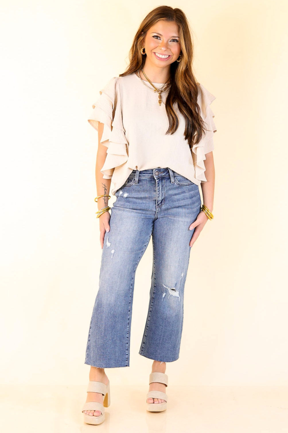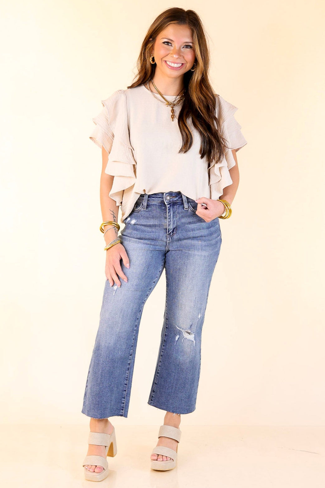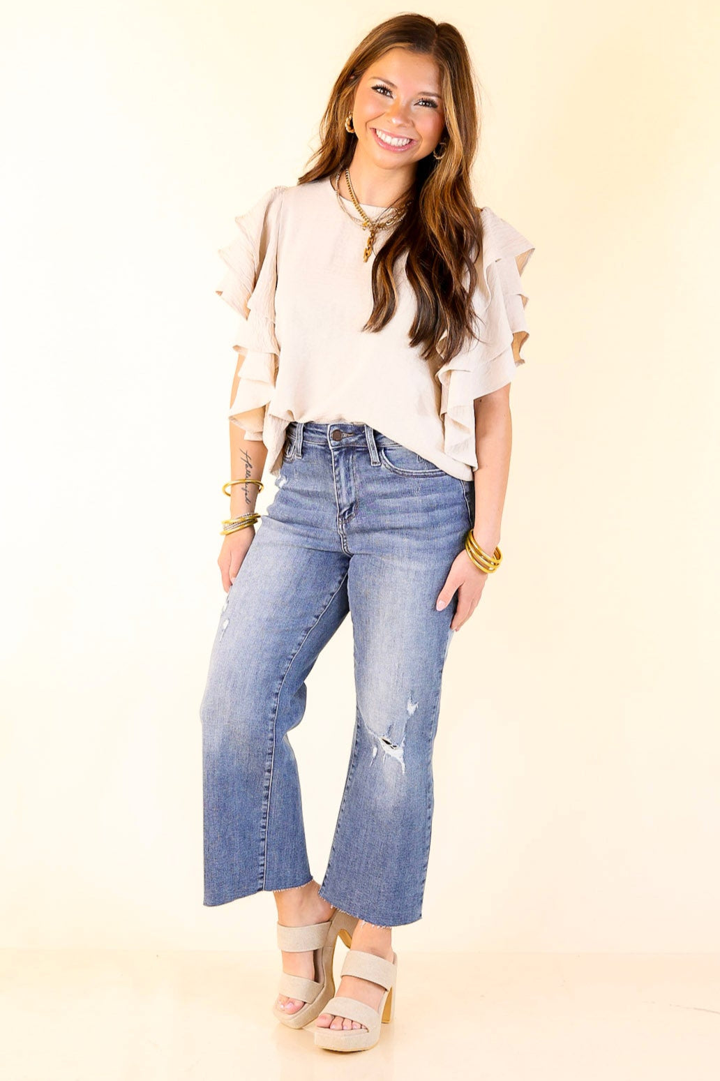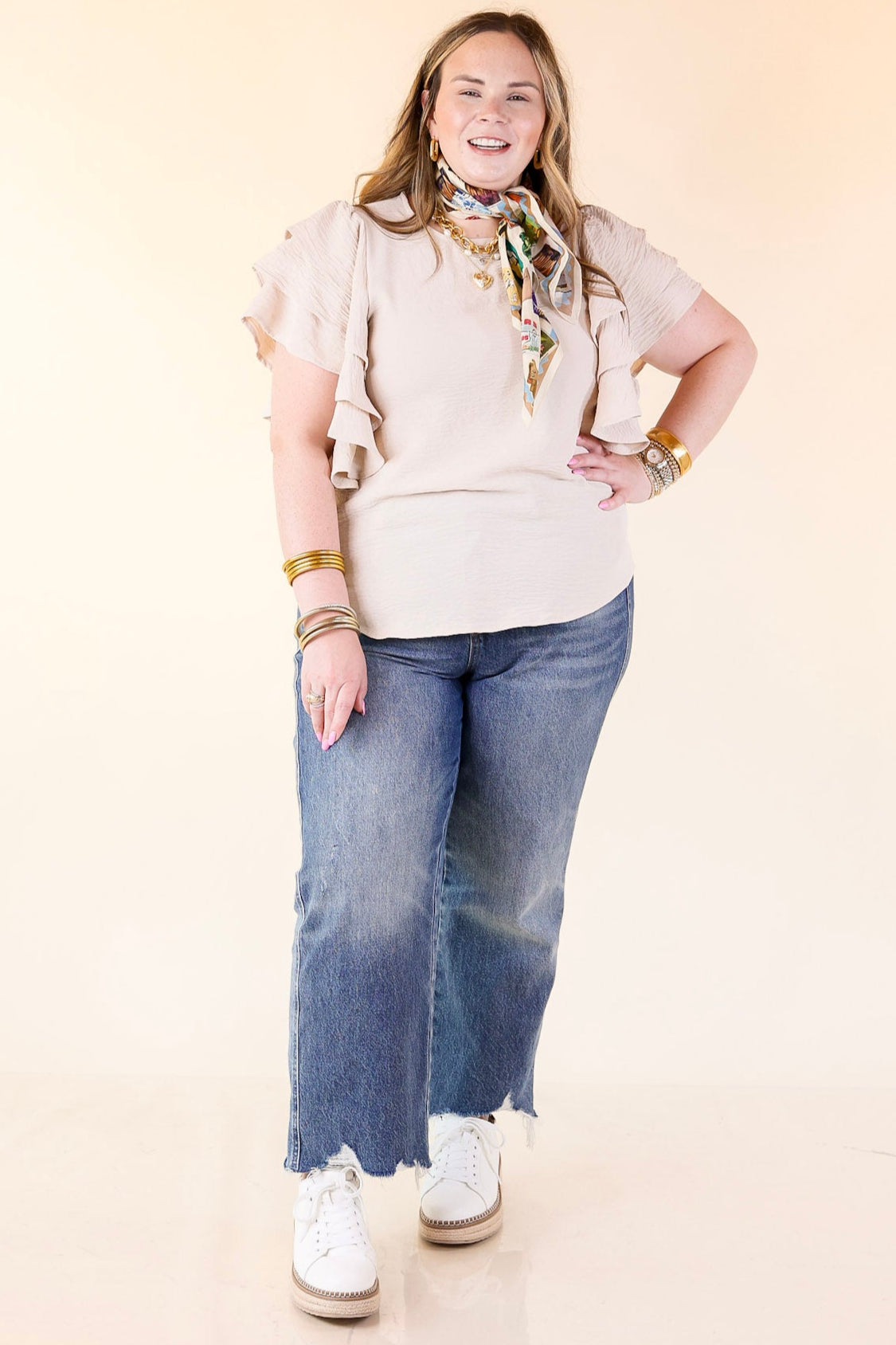 Turning Heads Multi-Tiered Ruffle Cap Sleeve Top in Beige