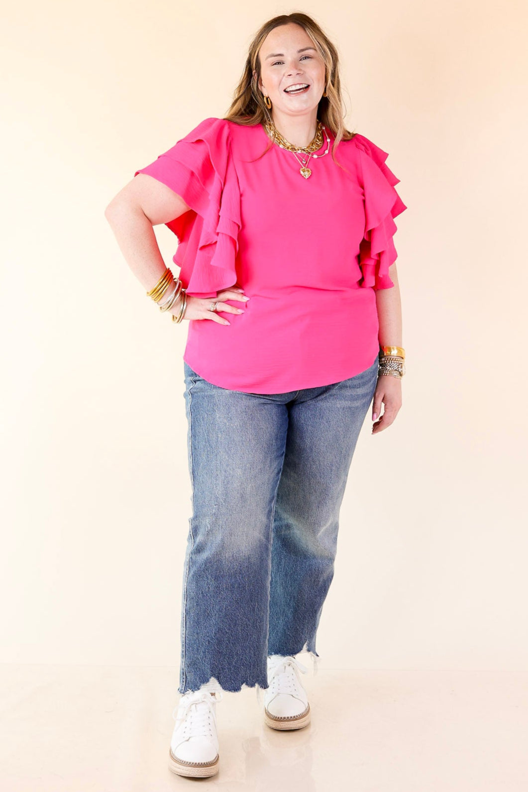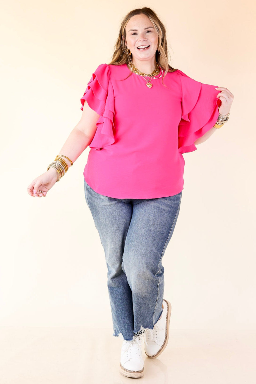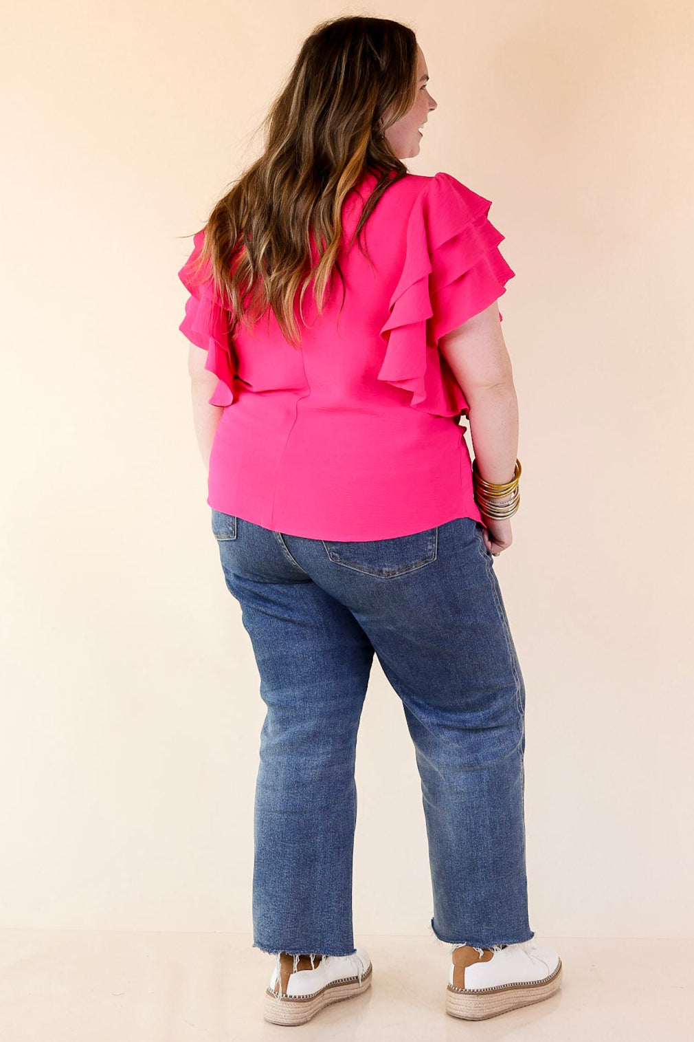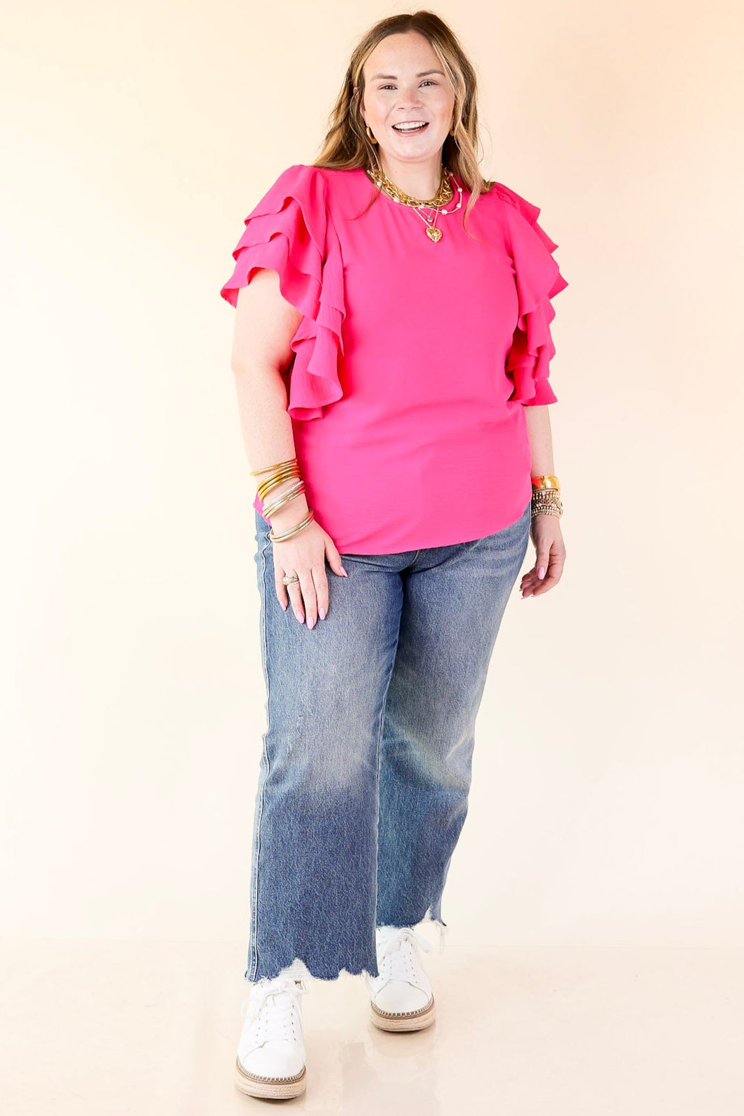 Turning Heads Multi-Tiered Ruffle Cap Sleeve Top in Hot Pink
