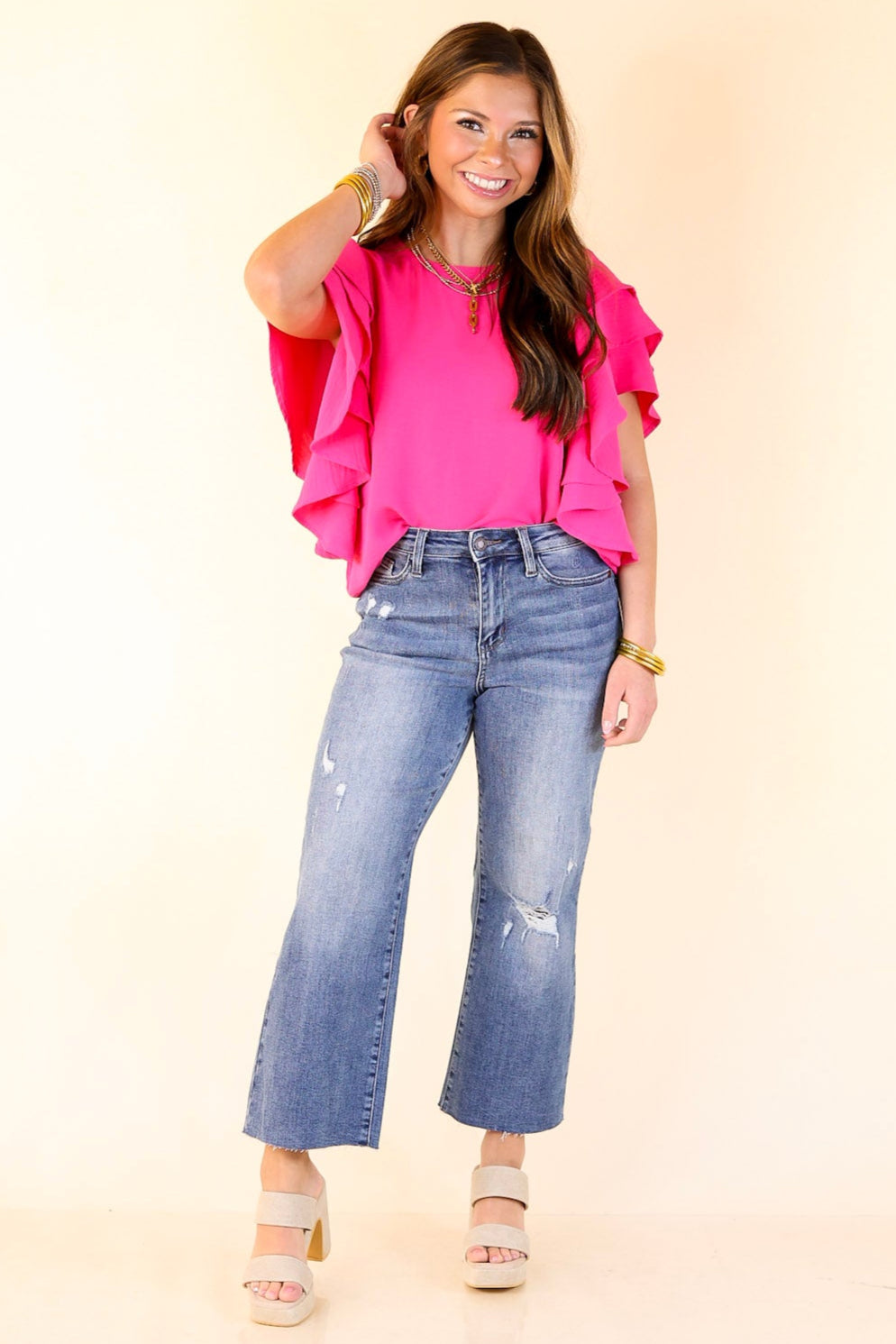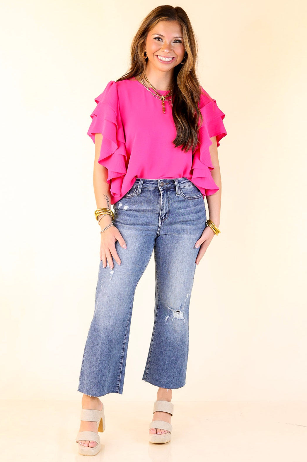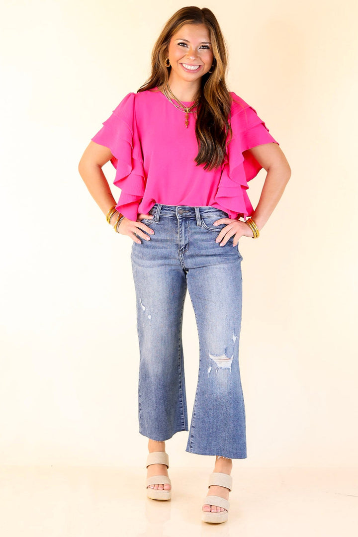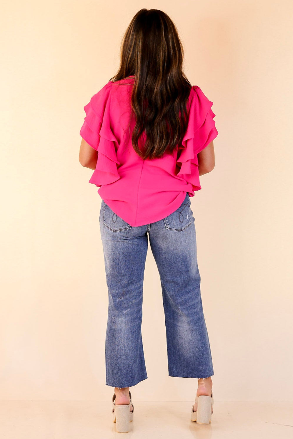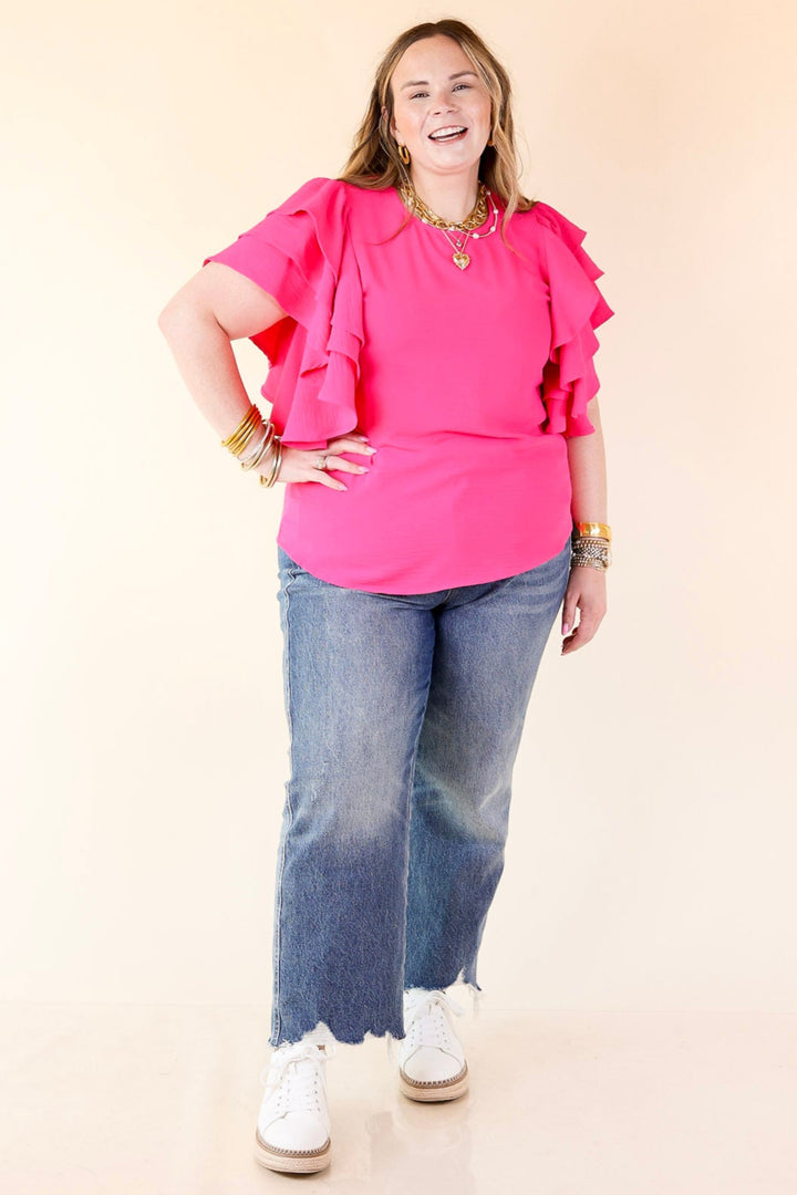 Turning Heads Multi-Tiered Ruffle Cap Sleeve Top in Hot Pink