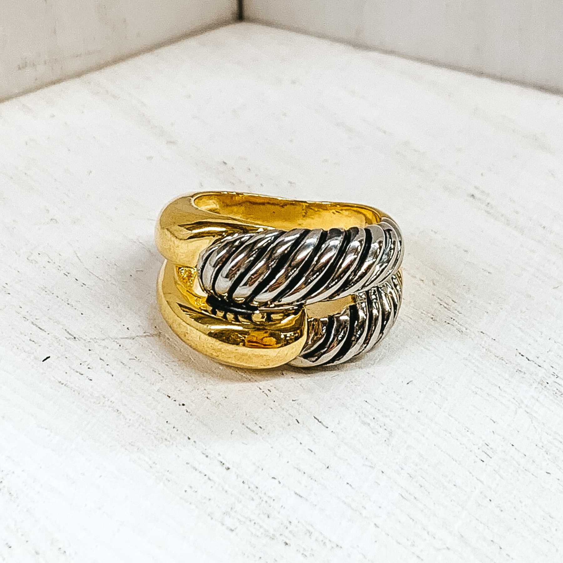 This gorgeous knot ring includes gold and silver tones! Perfect for people who love to mix and match metals!