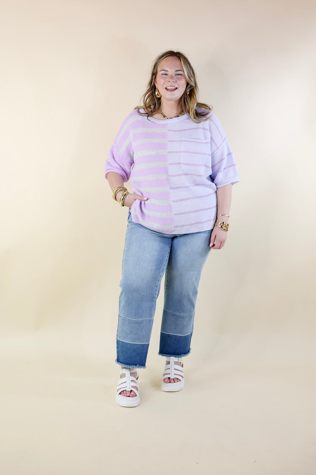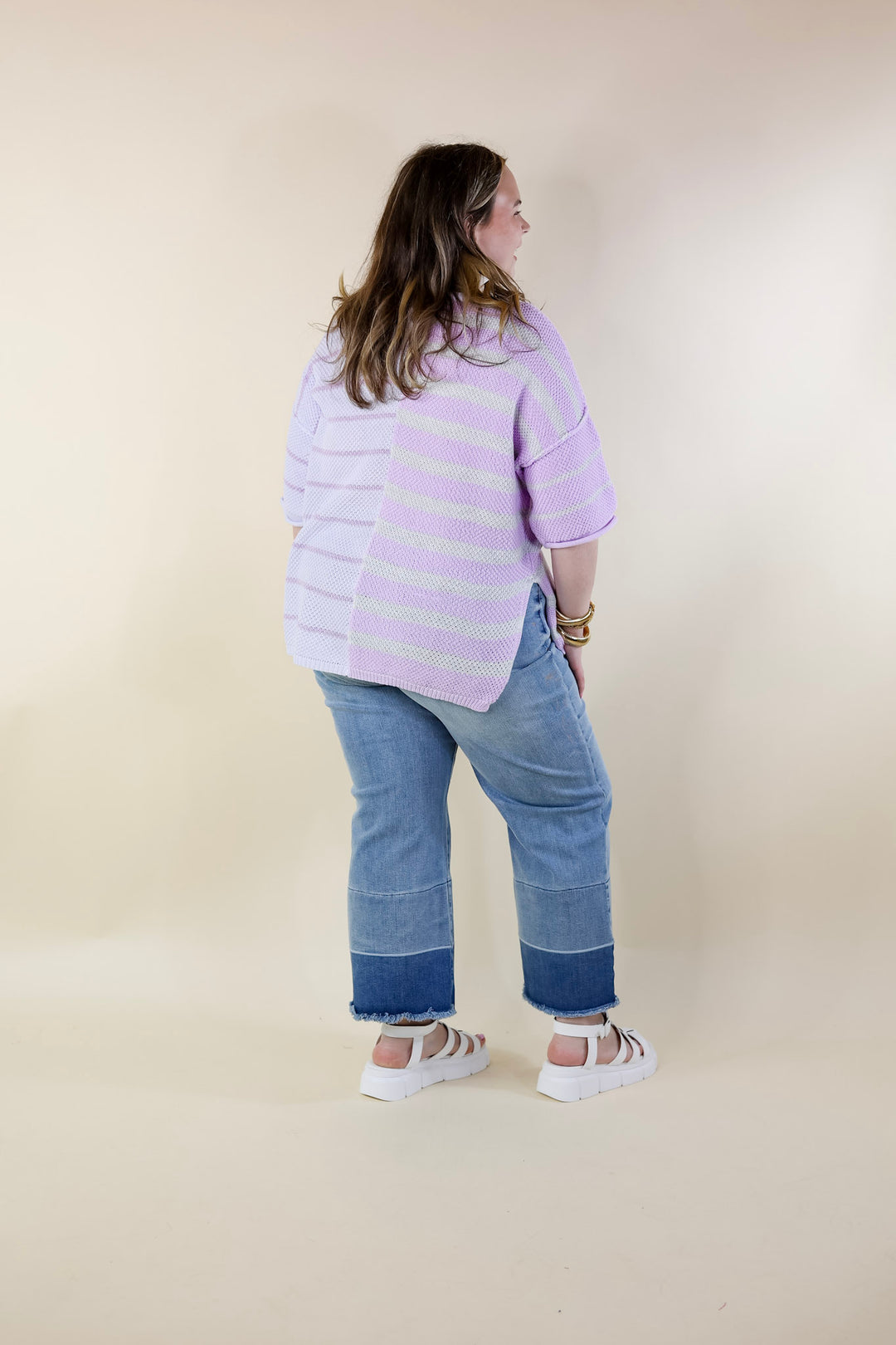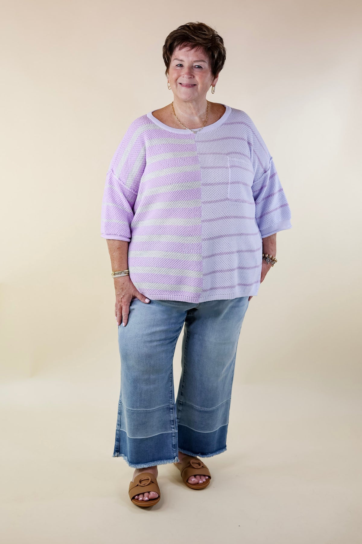 Urban Edge Color Block Striped Knit Top in Purple Mix