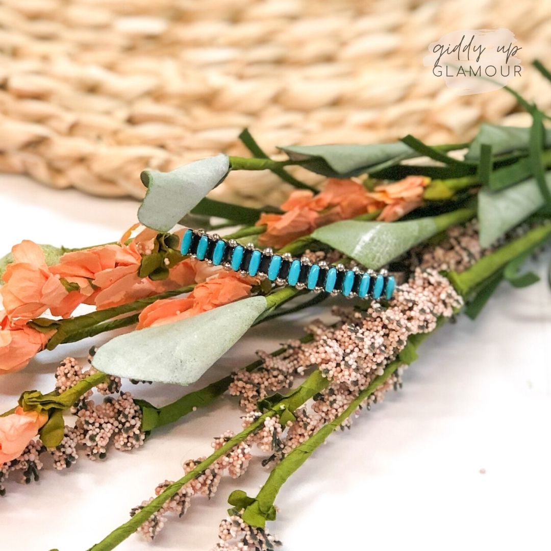 V Martz | Zuni Handmade Sterling Silver Cuff with Turquoise Stones