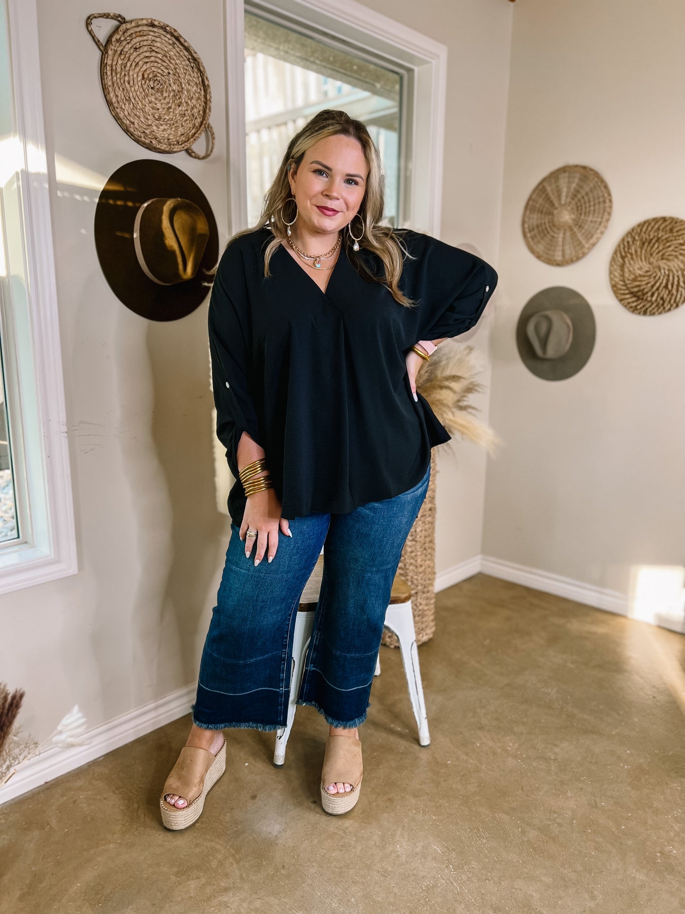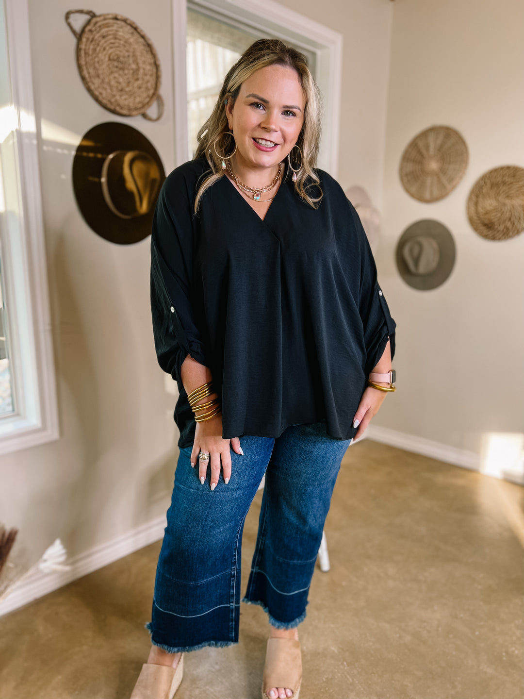 Last Chance Size Small & Medium | Weekend Out V Neck Placket 3/4 Sleeve Top in Black