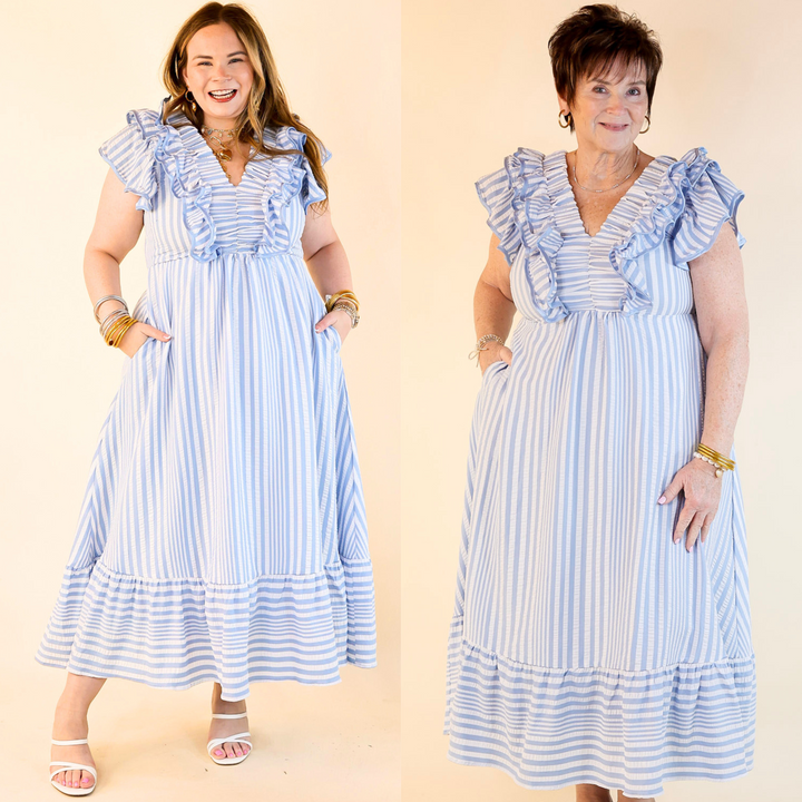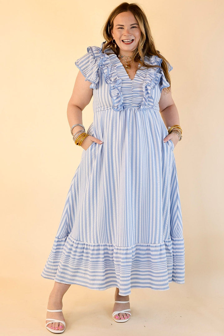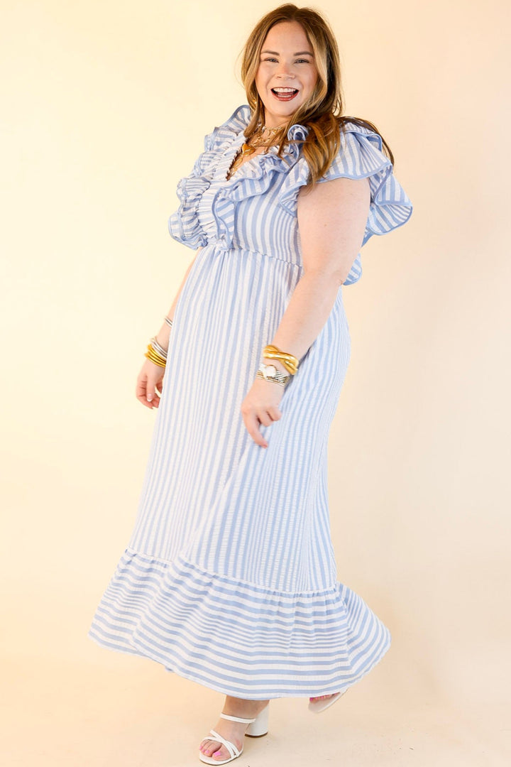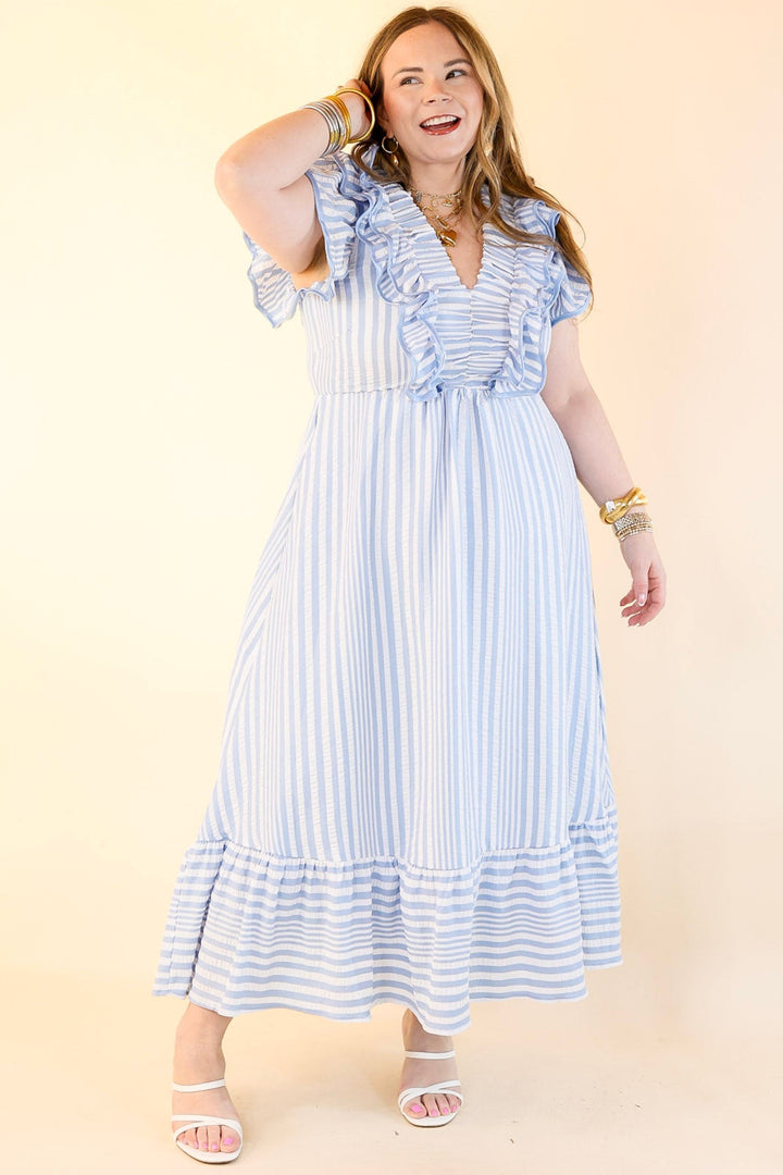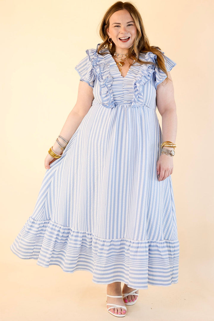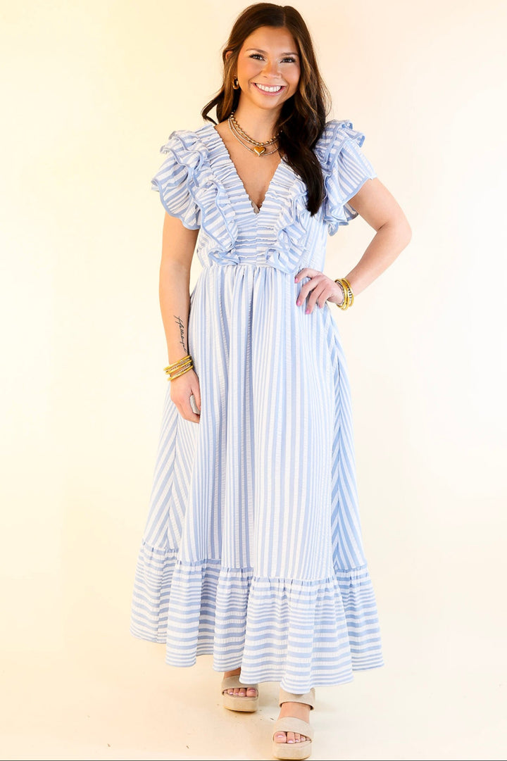 Oh So Sweet V-Neck Striped Maxi Dress in Light Blue