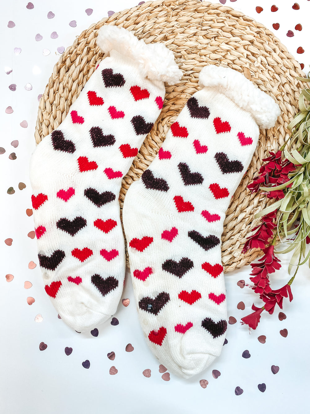 Looking for the perfect way to show Cupid your are in the spirit but also want to cozy up by the fire and watch a good rom-com? Look no further that these amazing sherpa socks that are the perfect thickness to keep your toesies warm, yet not too think to make them sweaty...yucky we know!! Available in three color options, these are the perfect sock to grab up!
