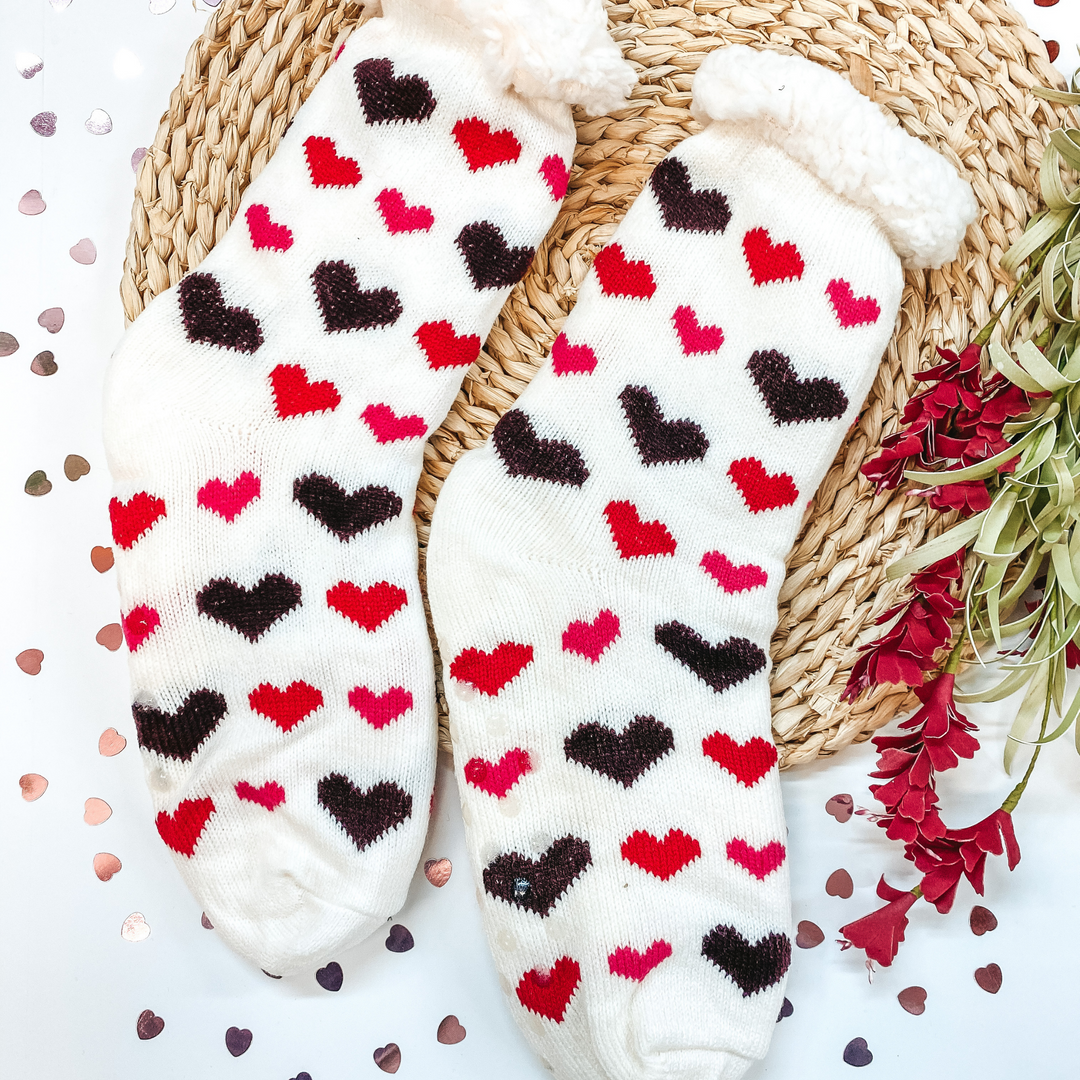 Valentine's Socks | Adult Love You Heart Sherpa Socks in White