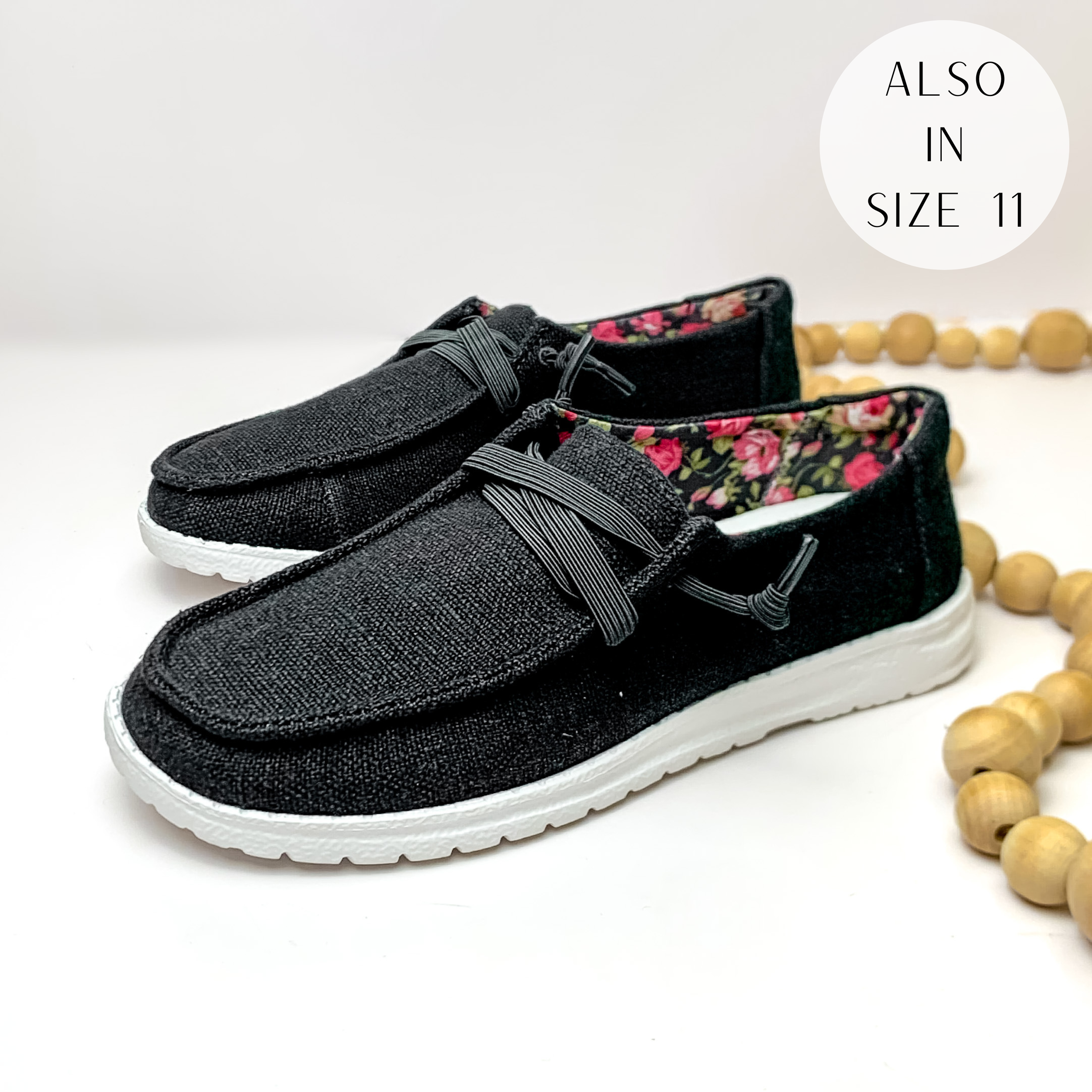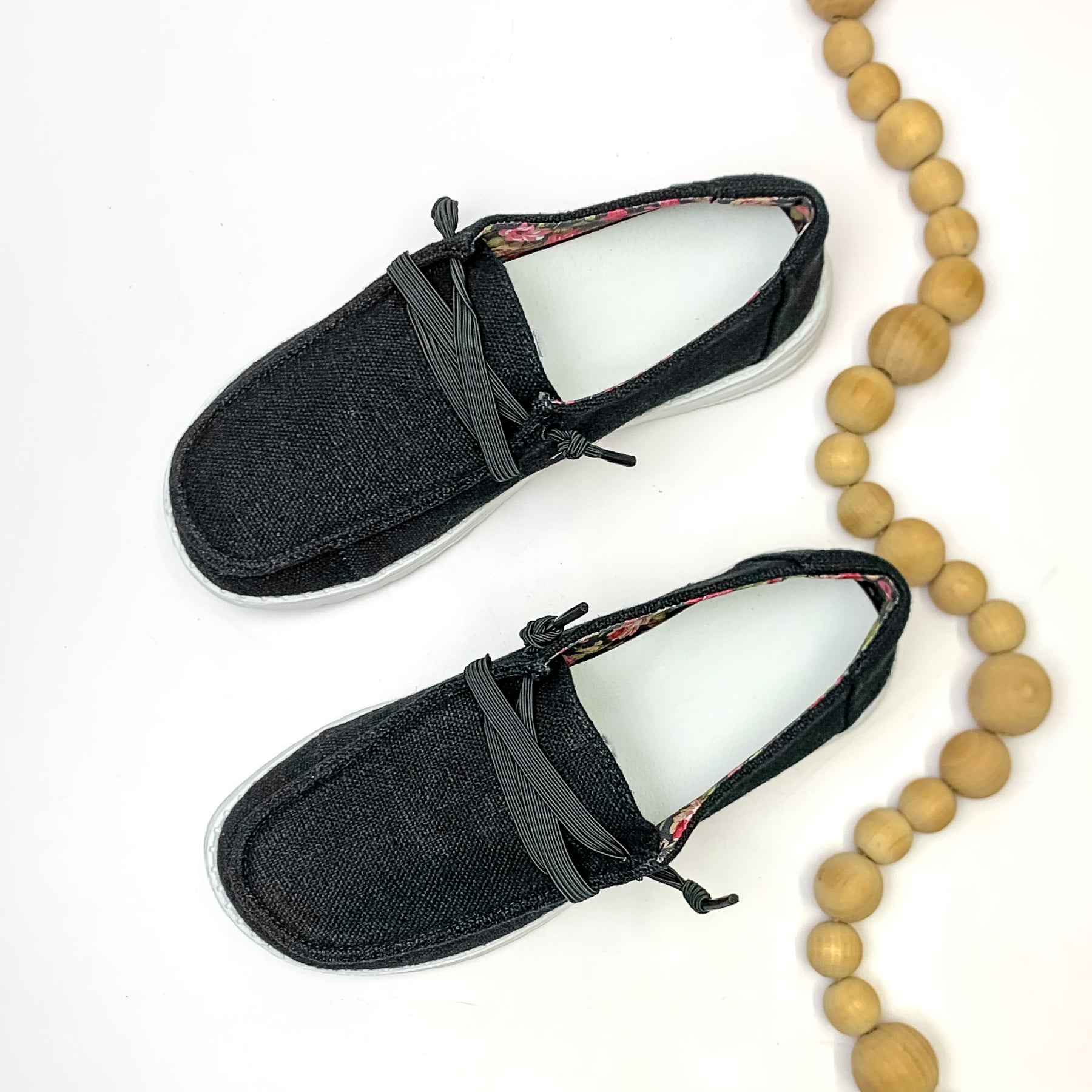 Last Chance Size 6 | Very G | Have To Run Slip On Loafers with Black Laces in Black Canvas