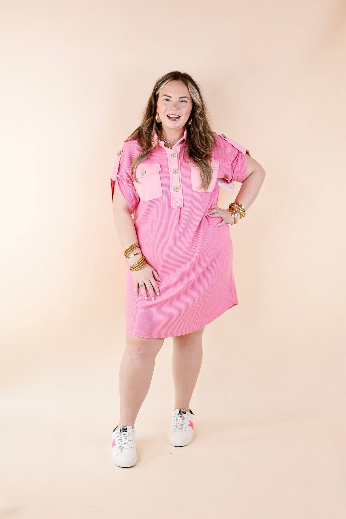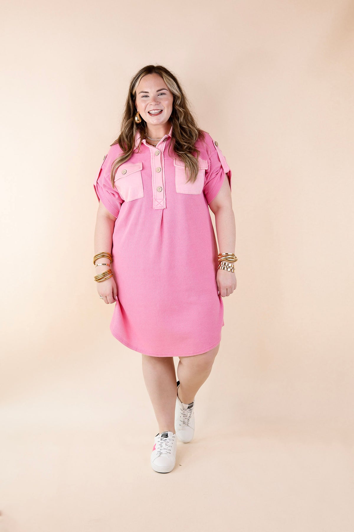 Elevate your style with our 'Vibe Check' dress, the epitome of comfort-meets-chic. Featuring a 3/4 button-up front and a classic collared neckline, this dress exudes casual sophistication. The short sleeves and front pockets add functional flair, while the ultra-comfortable material ensures all-day wearability. Whether you're running errands or meeting friends for brunch, the 'Vibe Check' dress promises effortless style and comfort.