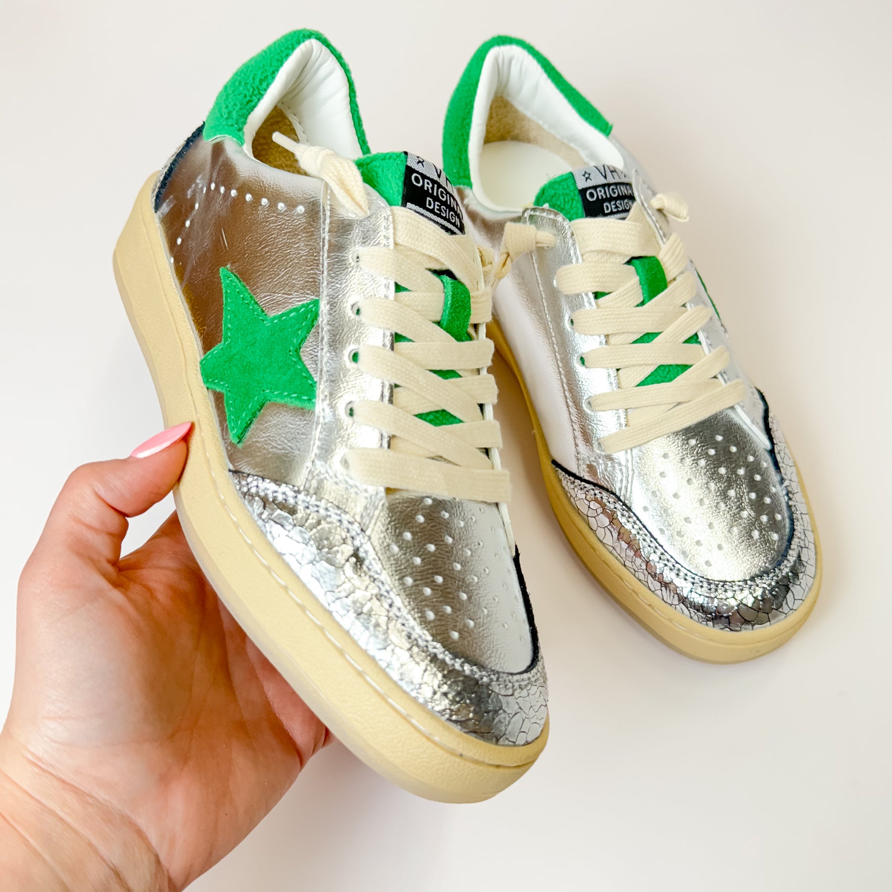 Vintage Havana | Denisse 10 Sneakers in Silver and Green