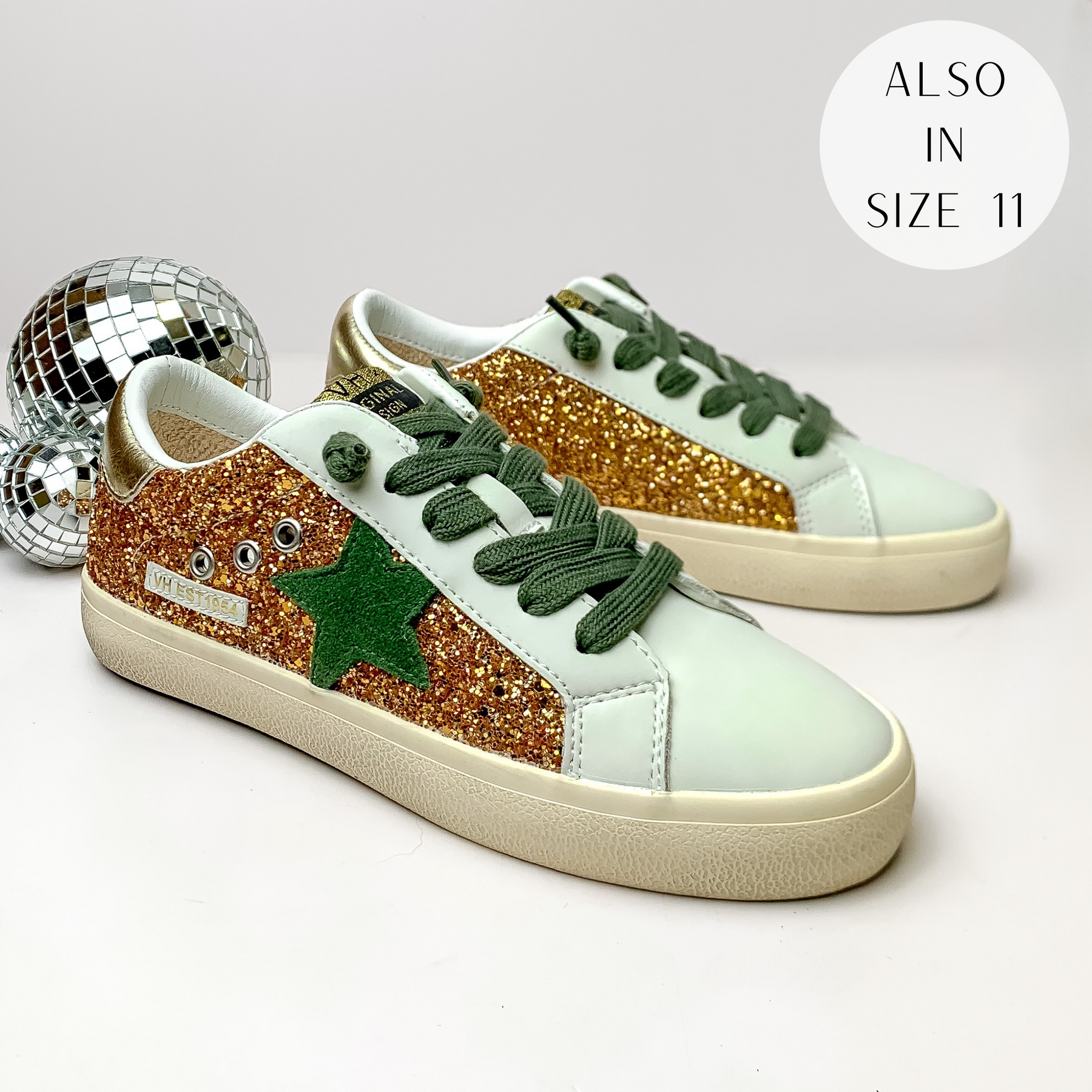 Last Chance Size 6.5, 7.5 & 11 | Vintage Havana | Flair 9 Sneakers in Gold Glitter Multi