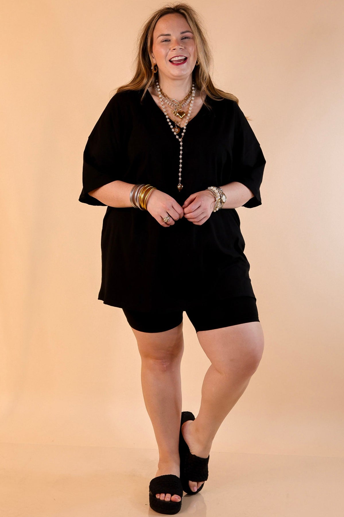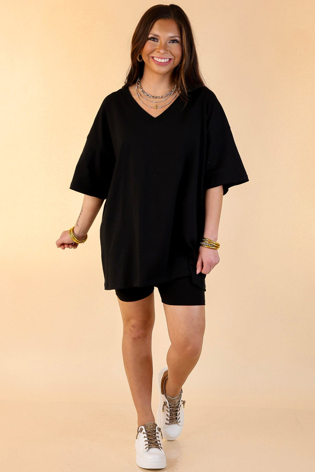 The Weekend Ease top is the perfect combination of comfort and style. Featuring a relaxed oversized fit, flattering V-neck, and cozy short sleeves, this top offers effortless chic for any casual occasion. Pair it with the matching biker shorts (sold separately) for a complete set that’s perfect for lounging, running errands, or enjoying a day of shopping. Made from soft, breathable fabric, the Weekend Ease top ensures all-day comfort while keeping you stylishly put together.