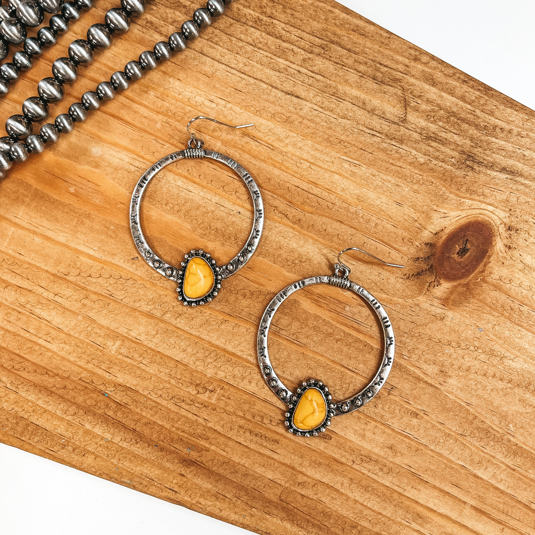 Pretty Perspective Western Engraved Hoop Earrings with Faux Stone in Mustard Yellow