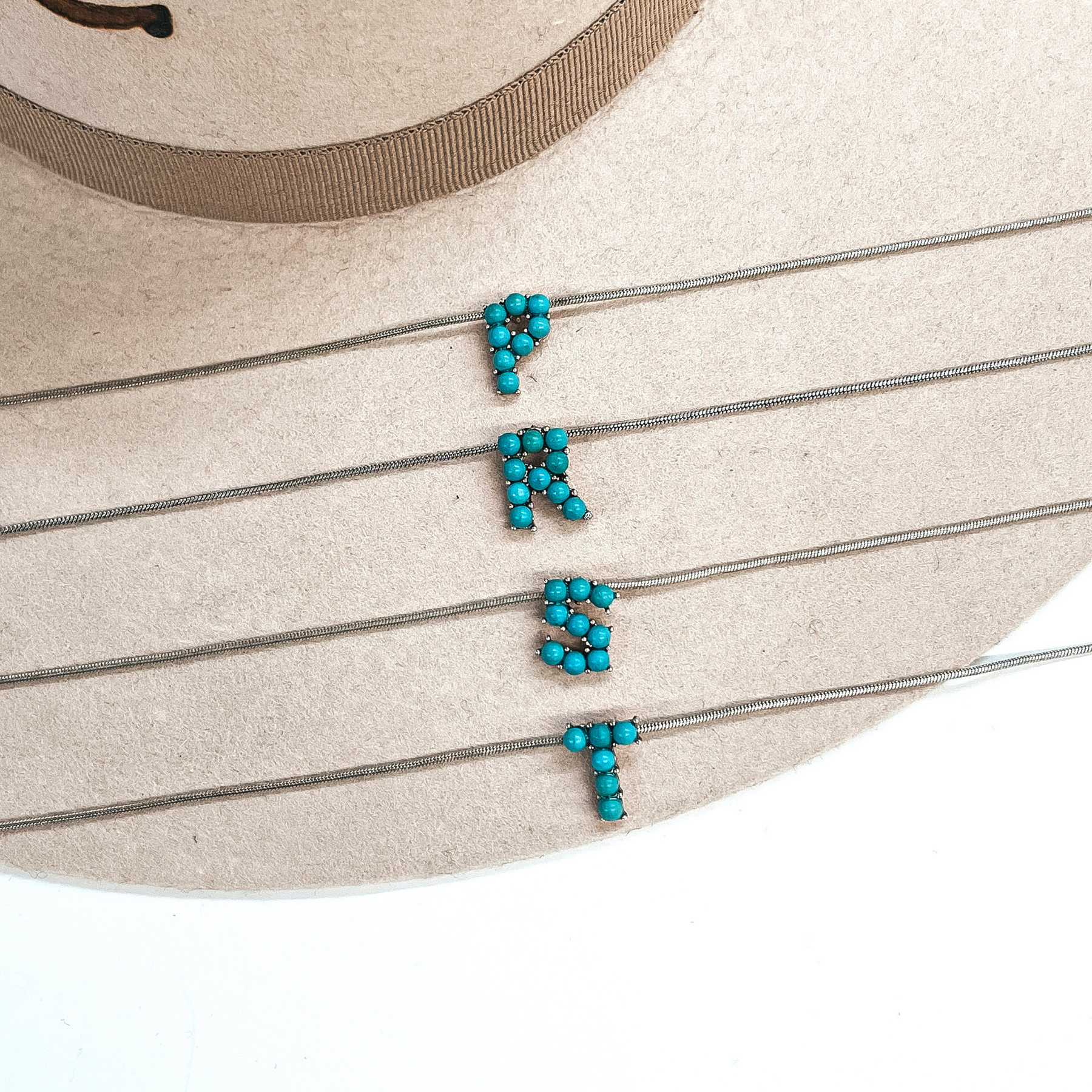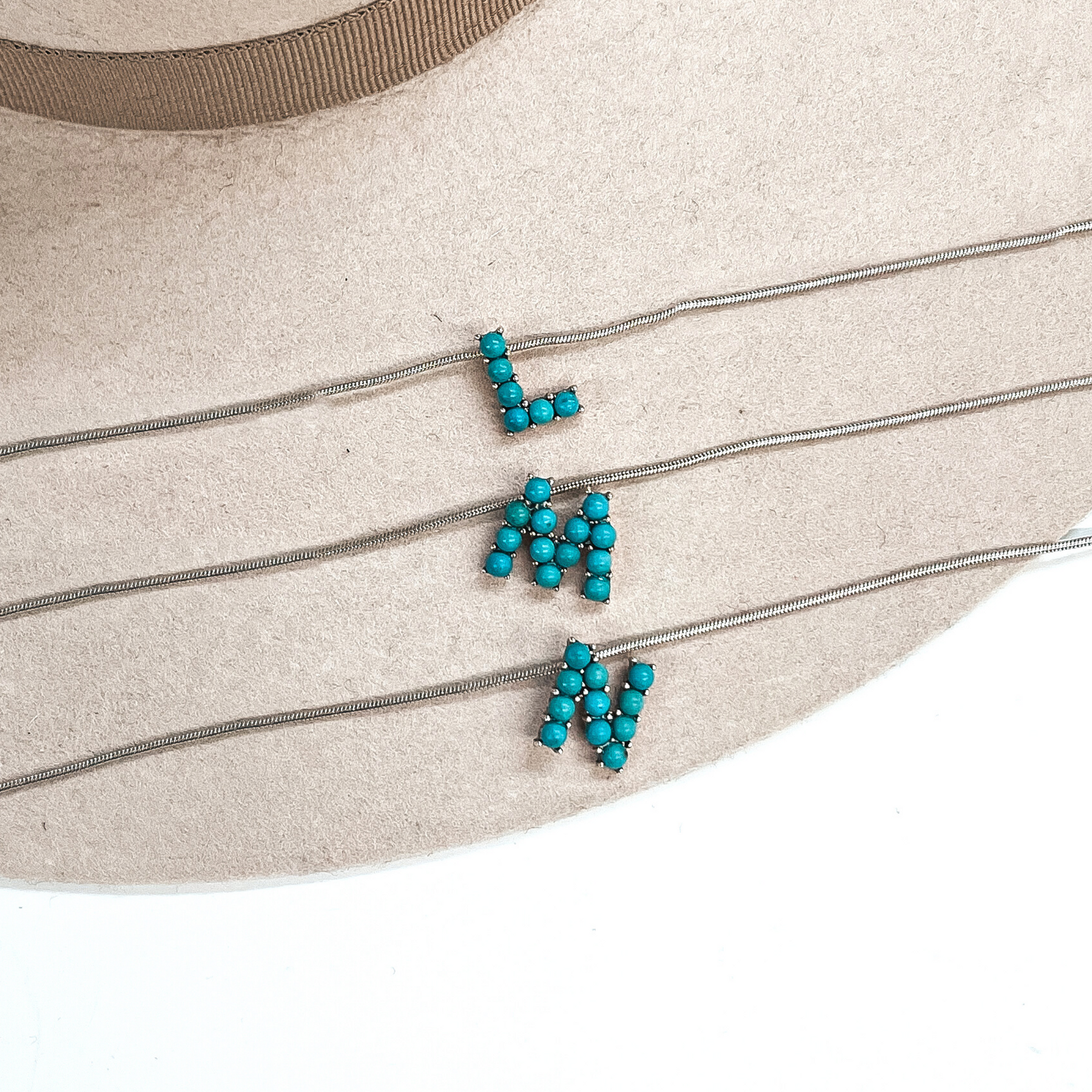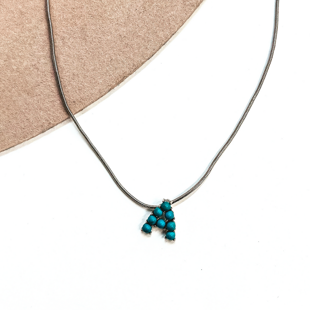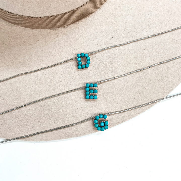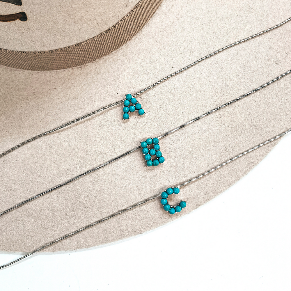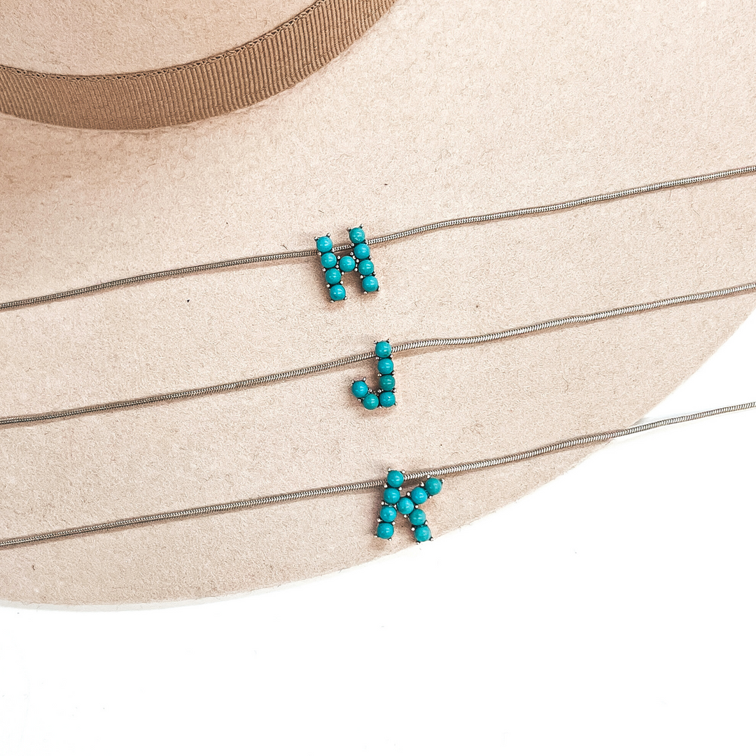 Seal My Fate Western Turquoise Initial Necklaces with Thin Herringbone Chain