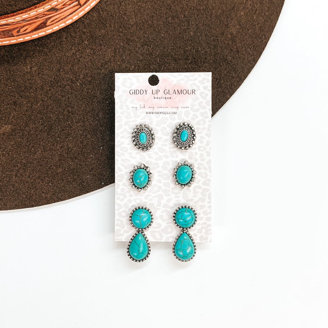 Mystical Dreamer Western Turquoise Stone Earring Set in Silver Tone