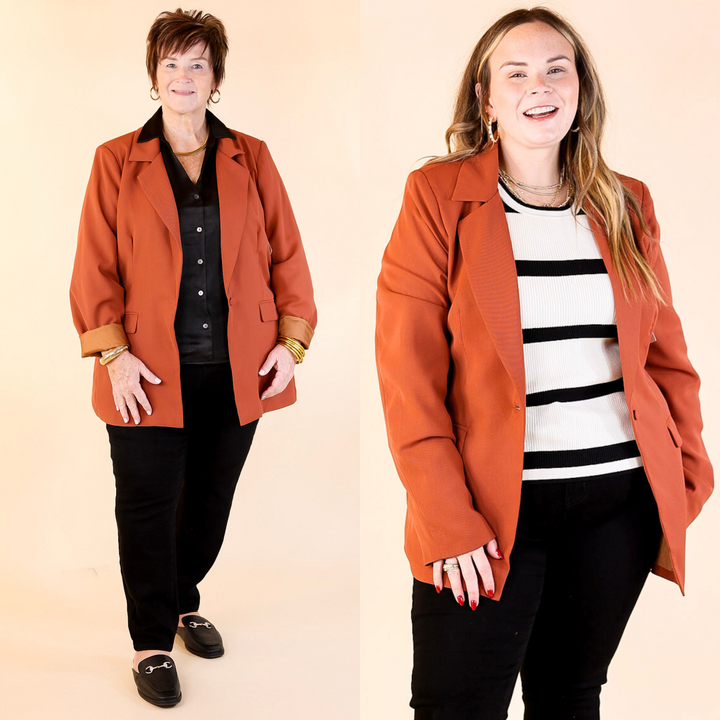 Winning Awards Long Sleeve Blazer in Rust Brown