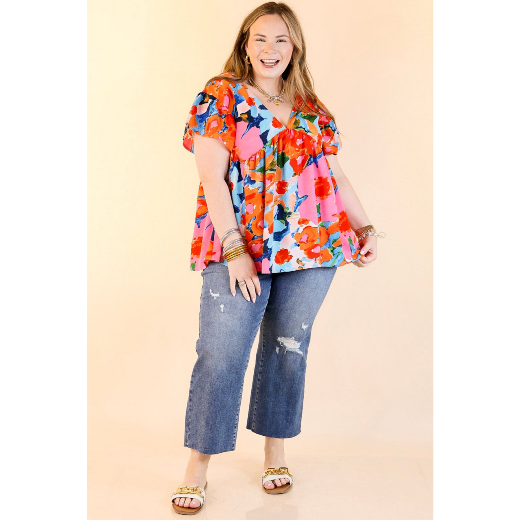 You Had Me At Aloha Watercolor Floral Top with V Neckline in Orange Mix